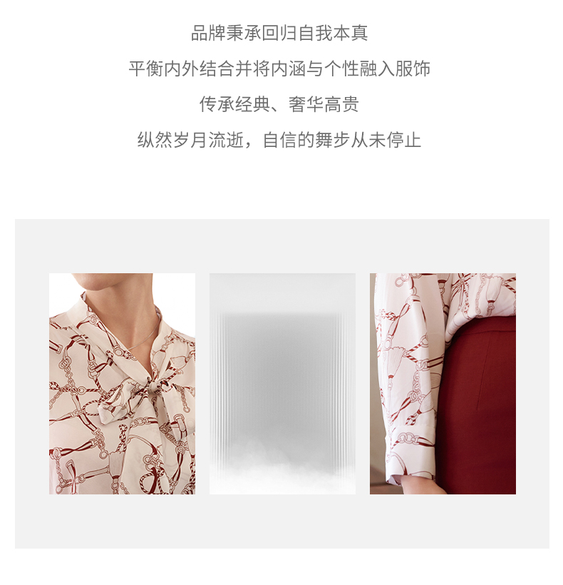 成熟、稳重、高贵典雅、大方得体 融合东方文化的含蓄和法国的浪漫 将创意的艺术性与消费需求相结合 为自信女性塑造高品质场合服装