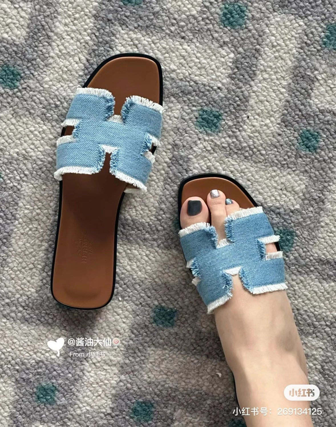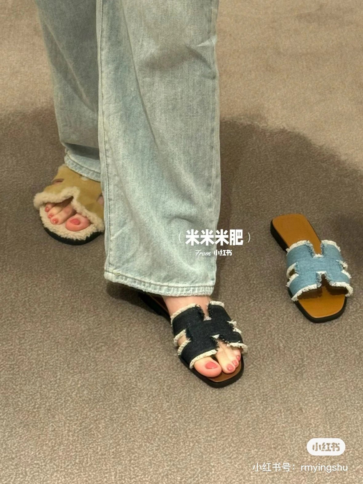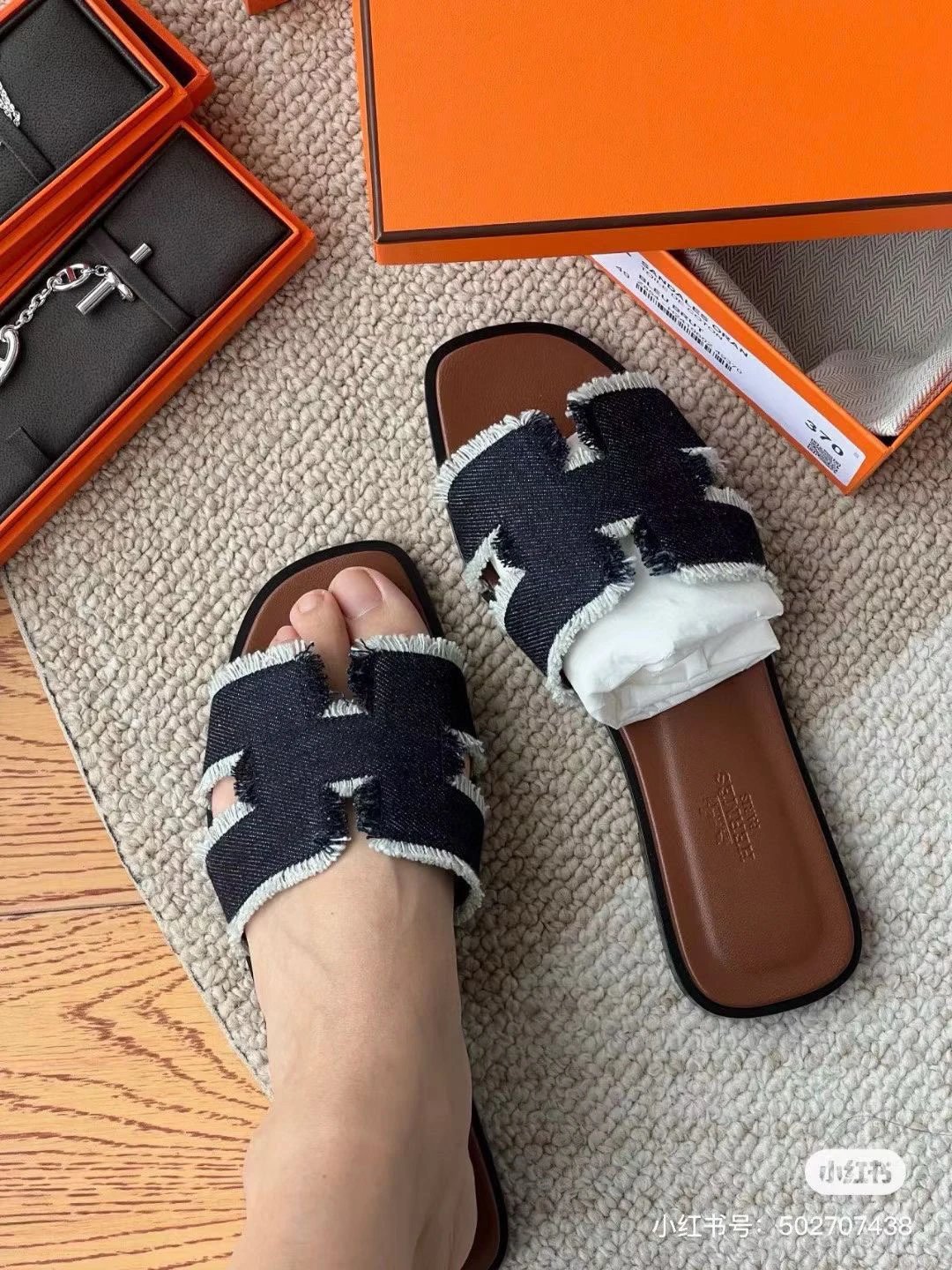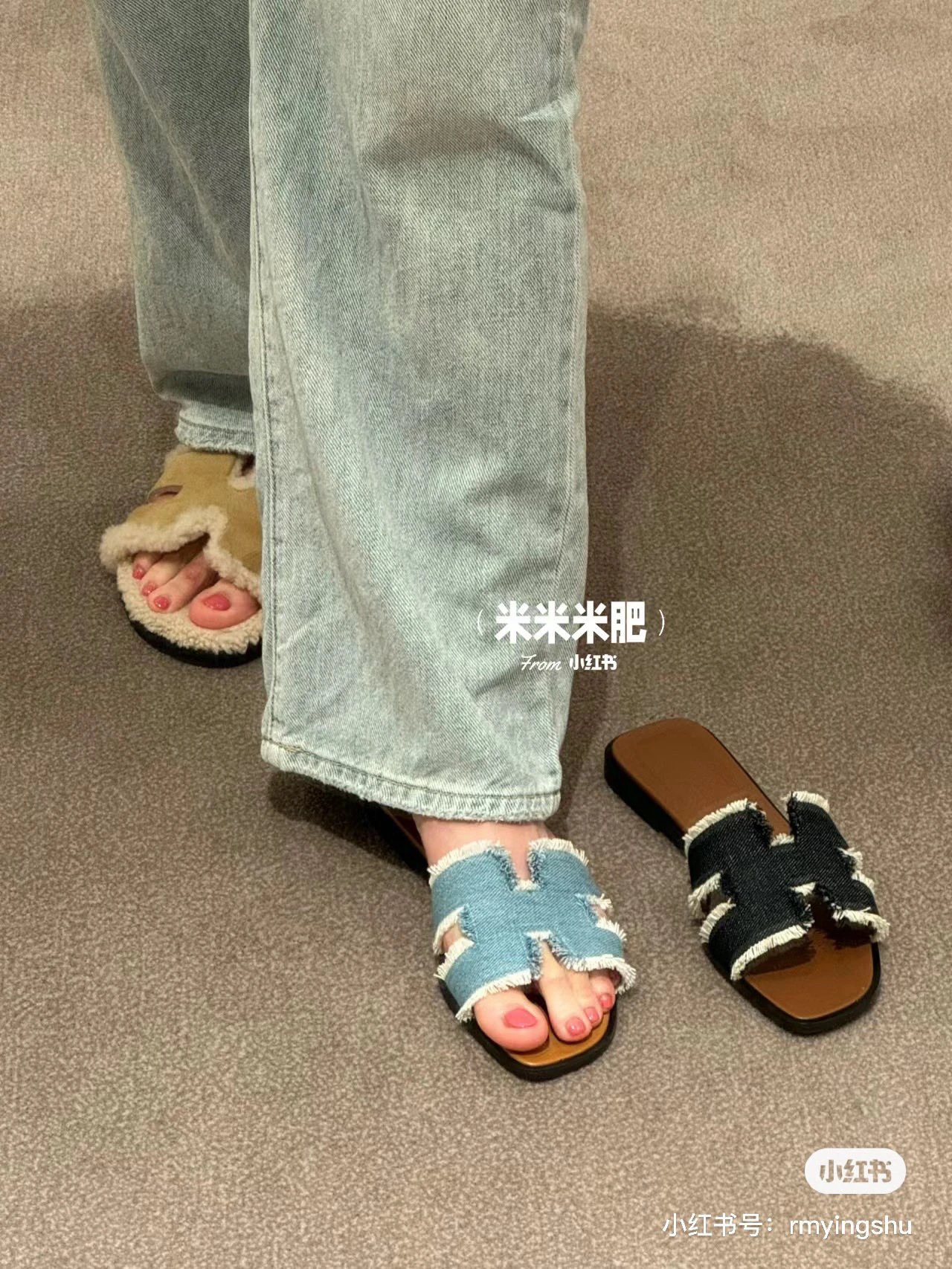 重磅渠道 Oran流苏牛仔布凉鞋 H牛仔流苏拖鞋 h拖鞋经典款平底拖鞋