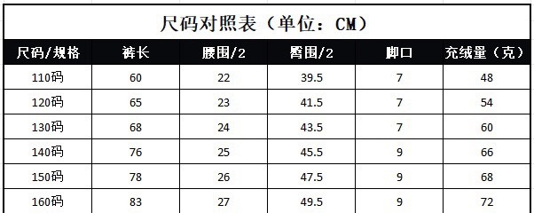 【商品名称】儿童黑金羽绒裤 【发货时效】72左右小时(爆单时效往后顺延) 【物流说明】西藏、新疆不发货,北上+1 【售后说明】1.非质量问题退换来回运费自理(扣发货运费5元)2.质量、缺件问题请签收后24小时内反馈,过期无法为您处理喔;3.快递运输可能造成产品包装挤压瑕疵,不在售后范围。