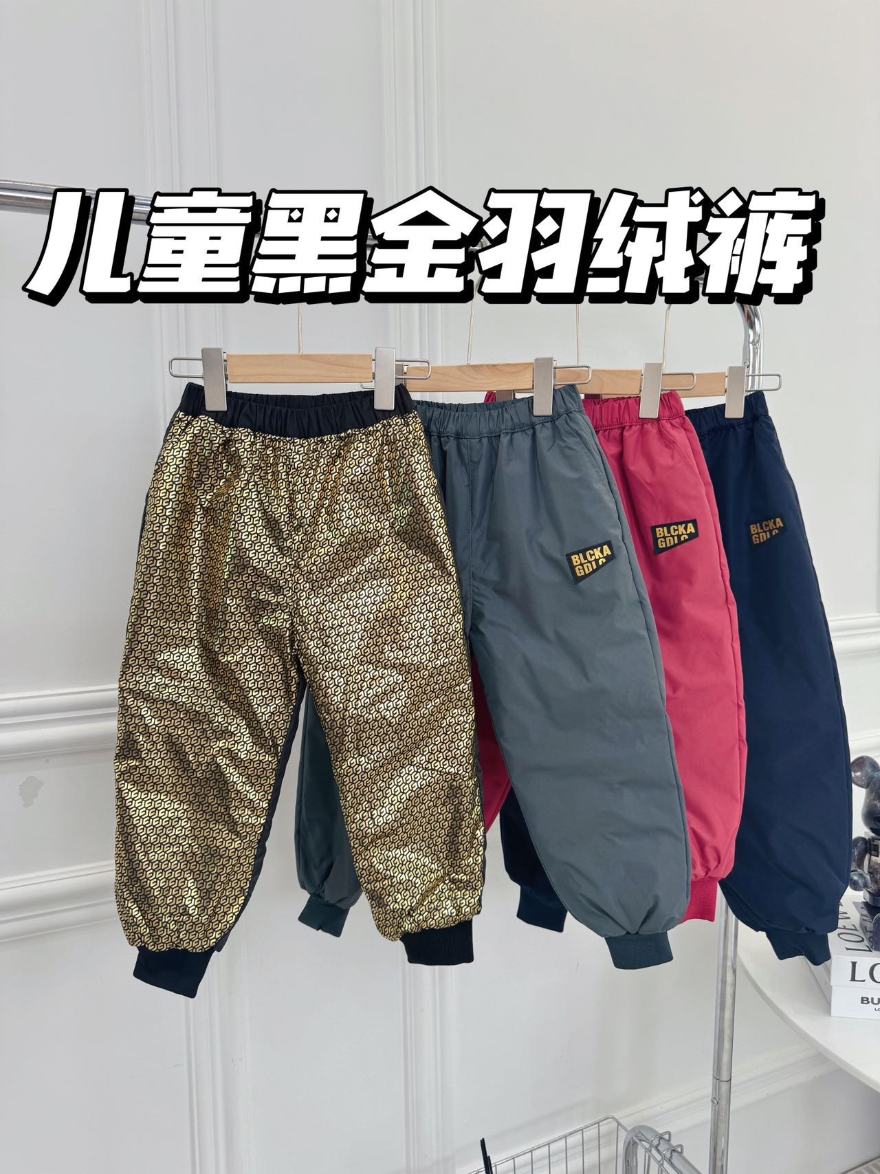 🔻四色儿童黑金羽绒裤 给宝宝穿既要好看又要舒适✨ 厚实保暖,温度与时髦并存~ ❗️腿不暖上衣穿多少都没有喔~ 套上这条羽绒棉裤给宝宝出门的勇气和安全感~ ✅一共四个颜色男女宝宝都能穿哈