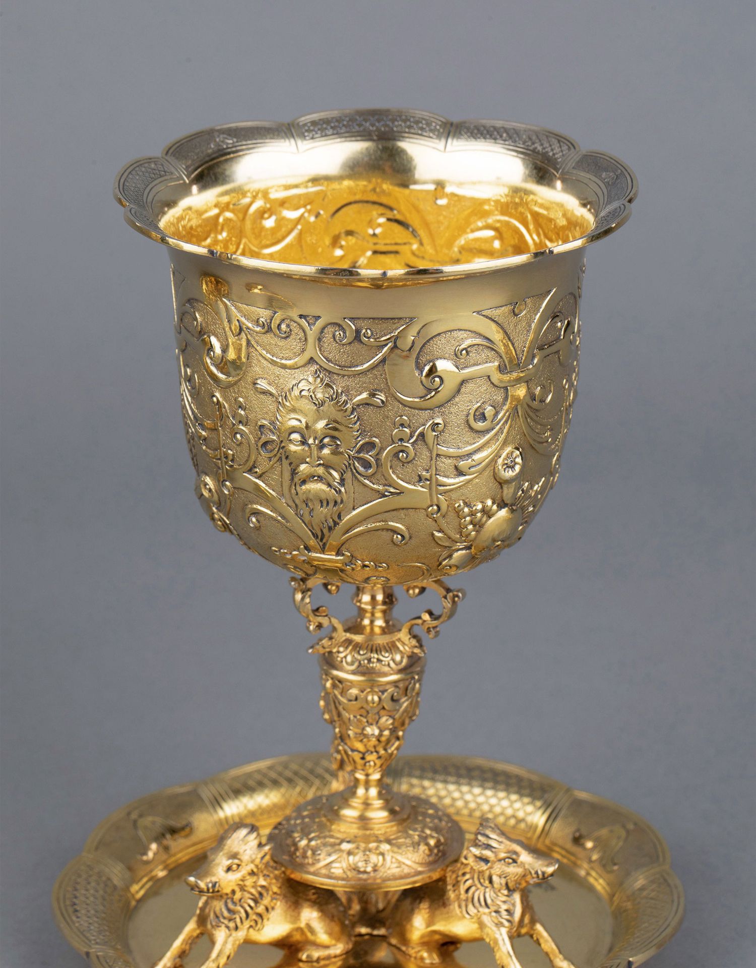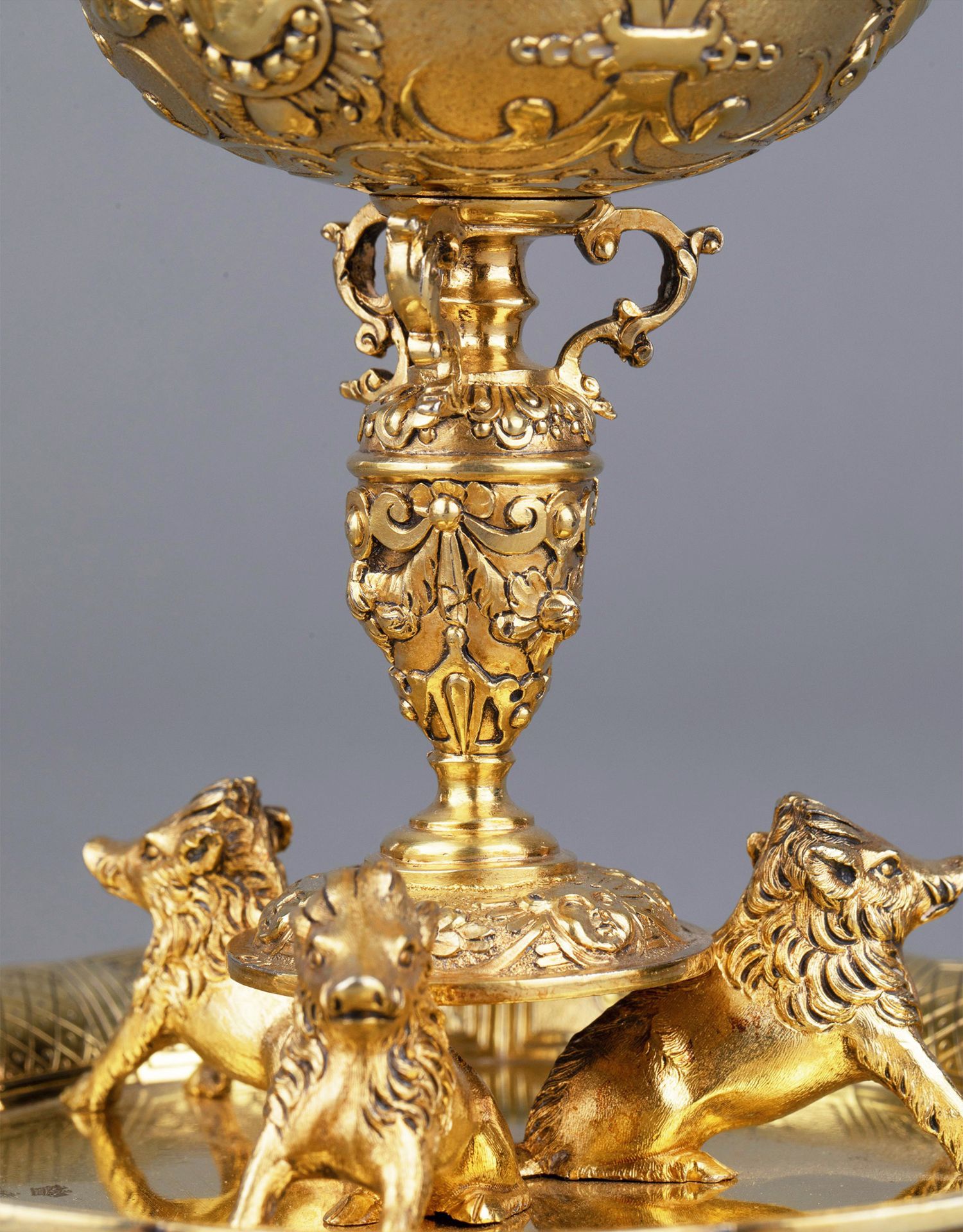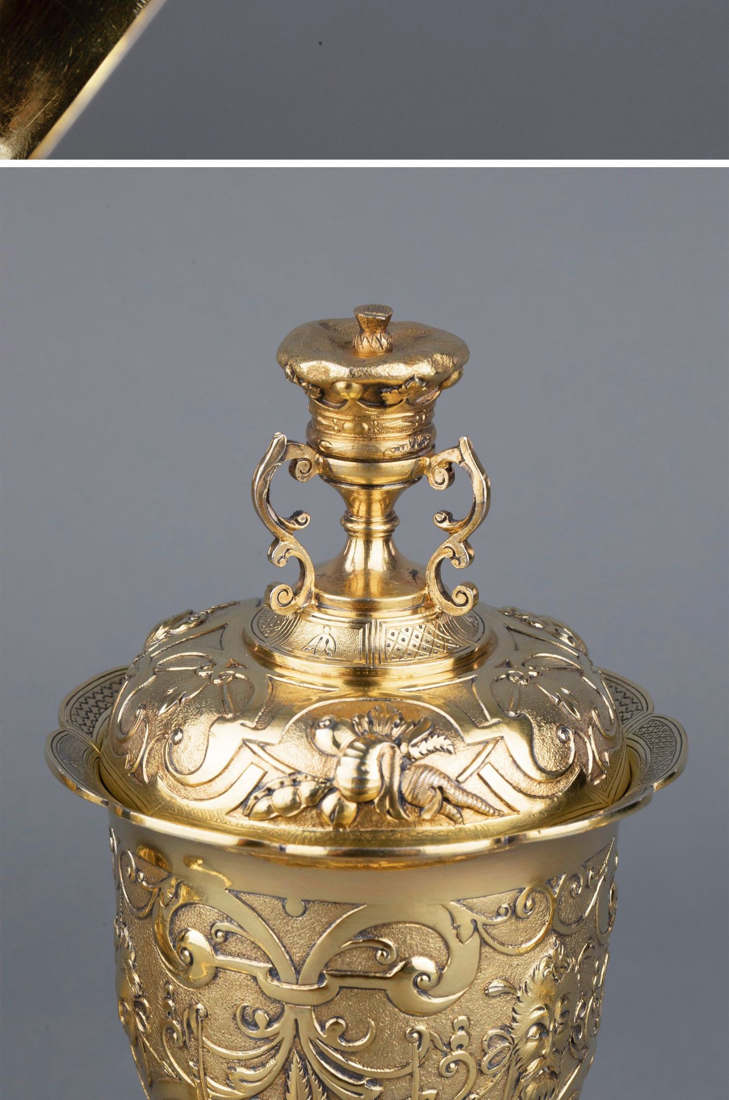 独角鹿西洋古董银器William Elliott狩猎主题纯银镀金糖罐套件