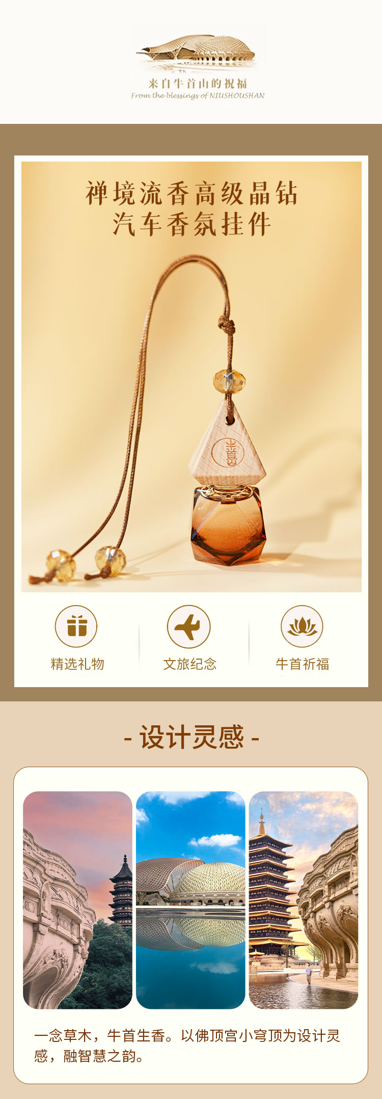 牛首山佛顶宫禅境流香高级晶钻汽车香氛挂件牛首山佛顶宫同款香