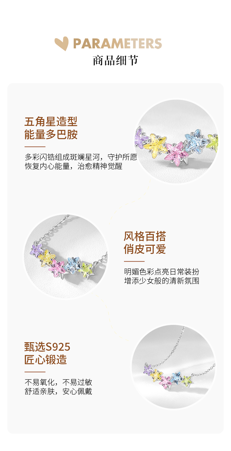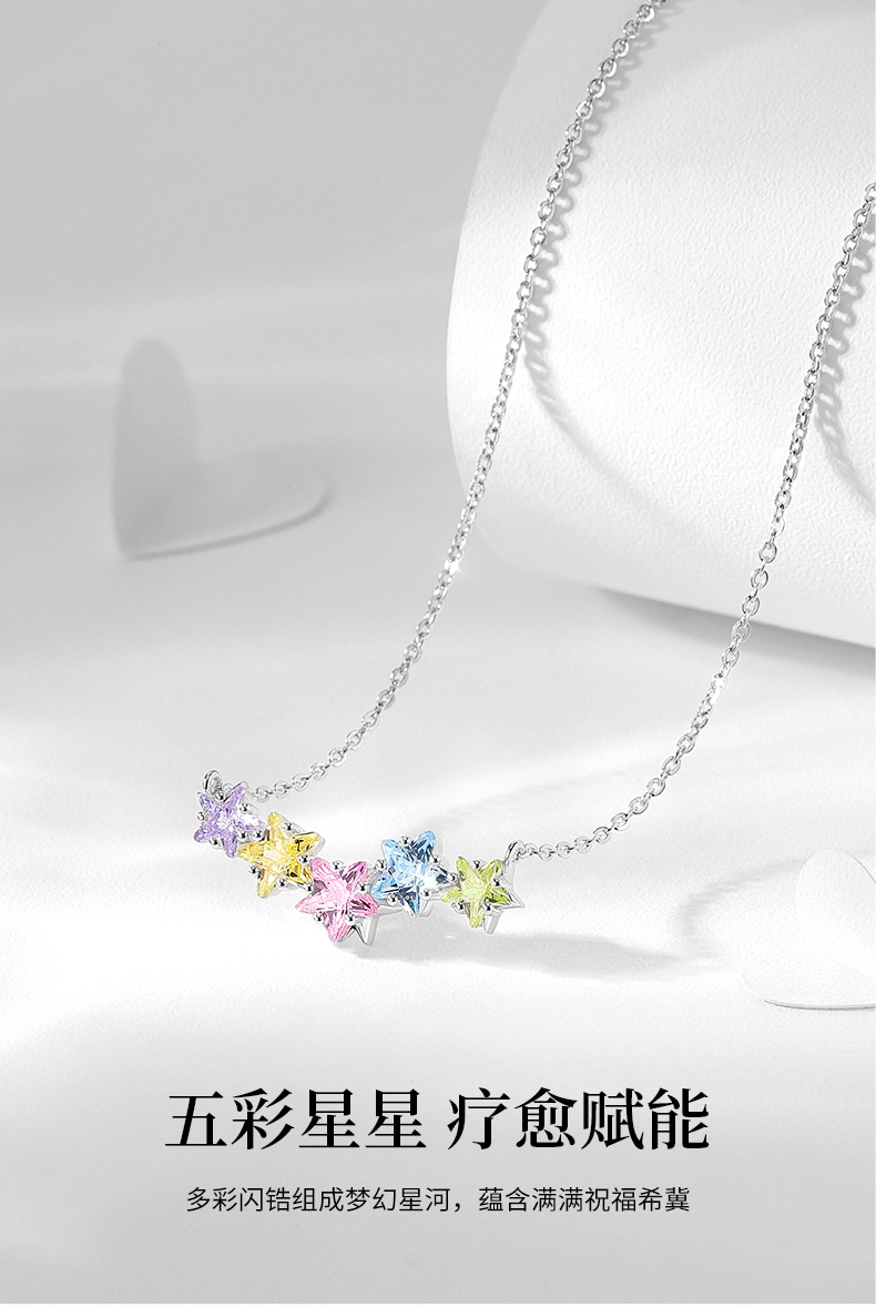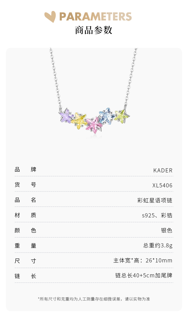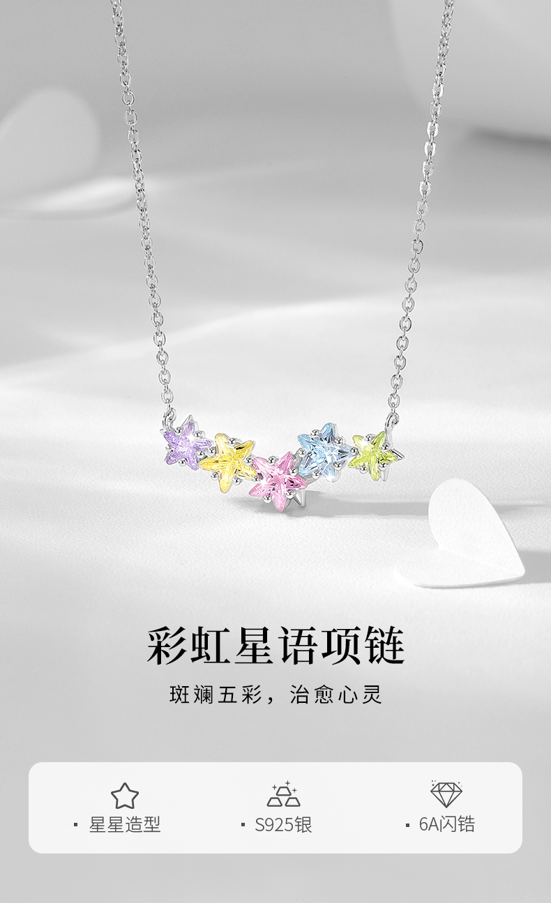 卡蒂罗/KADER 彩虹星语项链 镶嵌五色闪锆夏季多巴胺璀璨星河童话甜美可爱可调节锁骨链