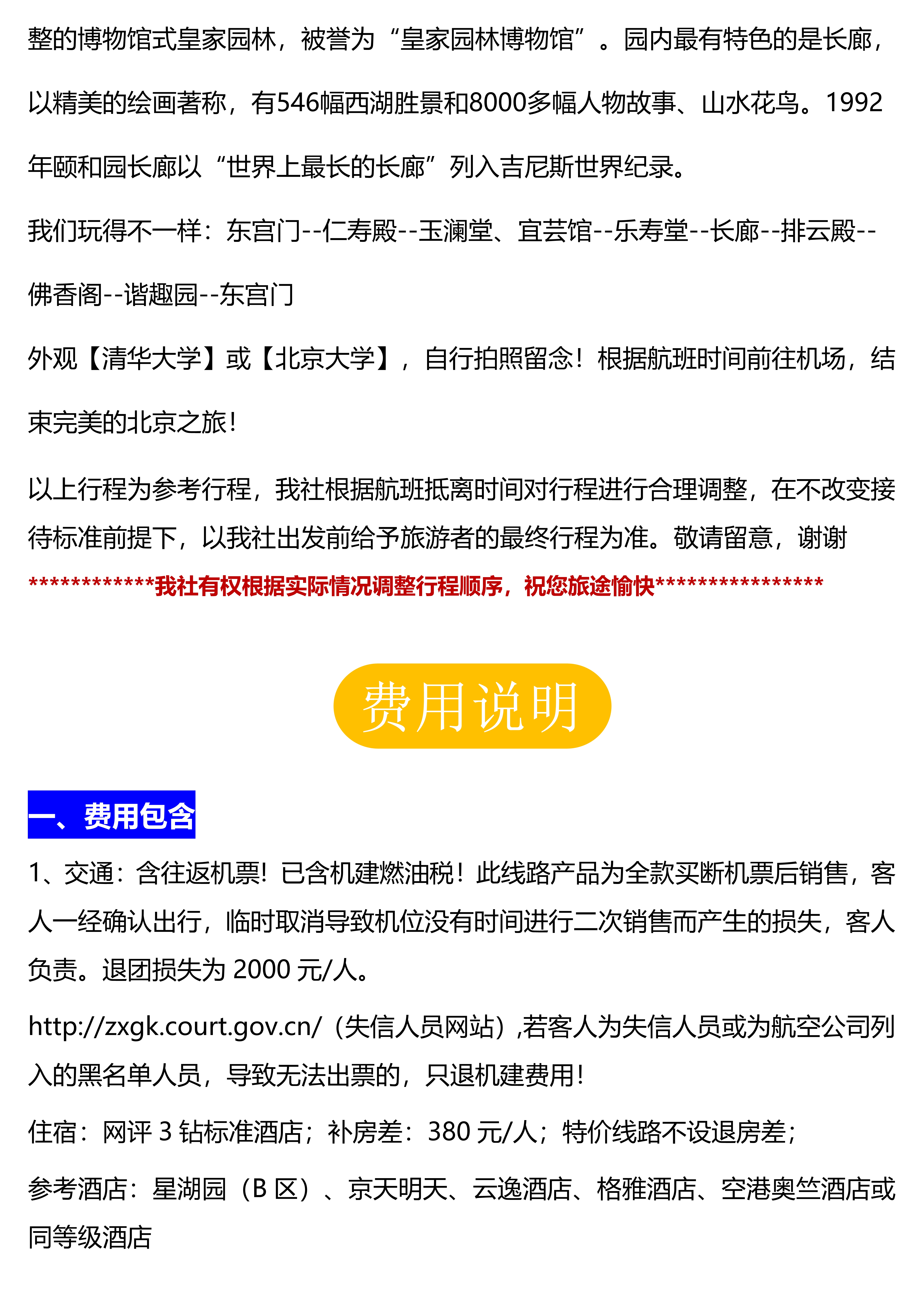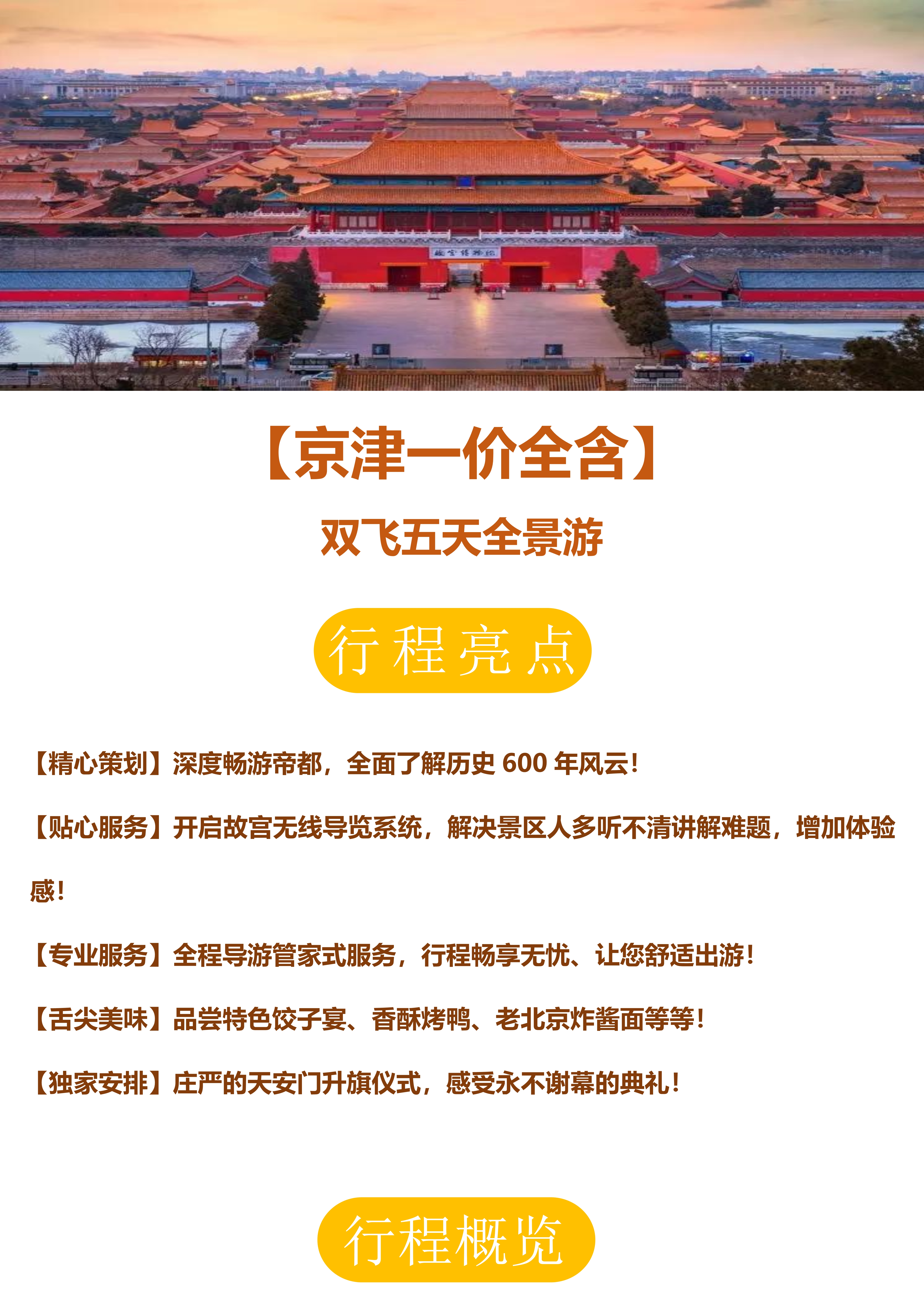 【京津一价全含】 双飞五天全景游
