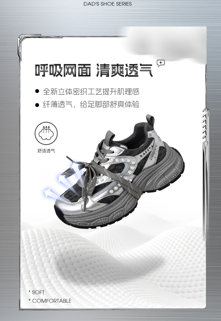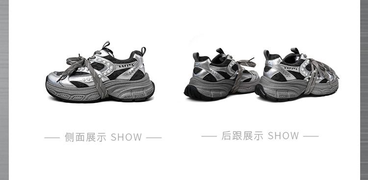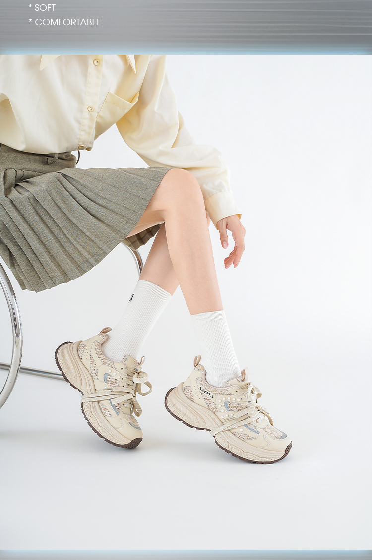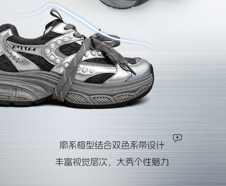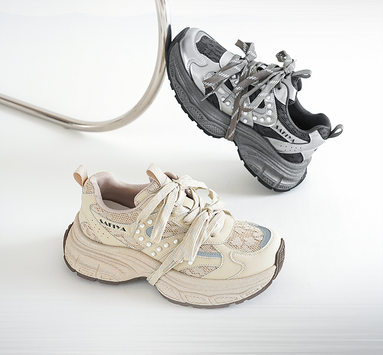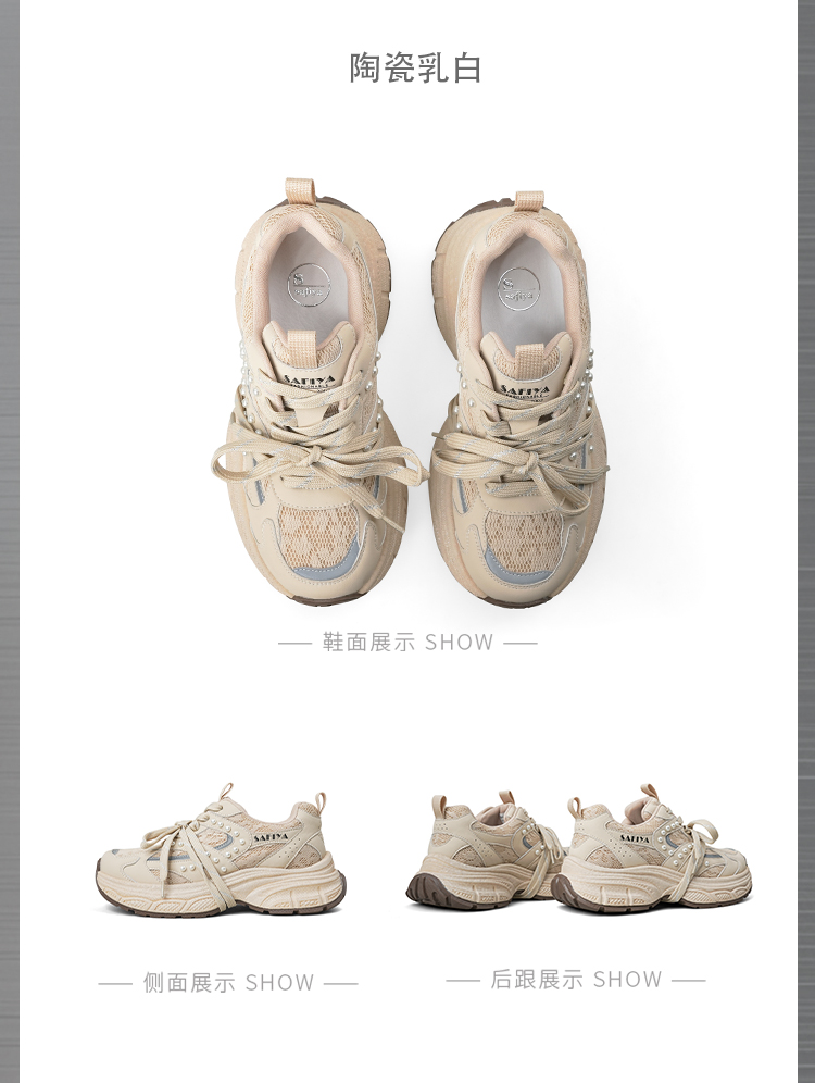 Safiya/索菲娅2025时尚珍珠网面透气增高厚底运动休闲老爹鞋SFD3112125