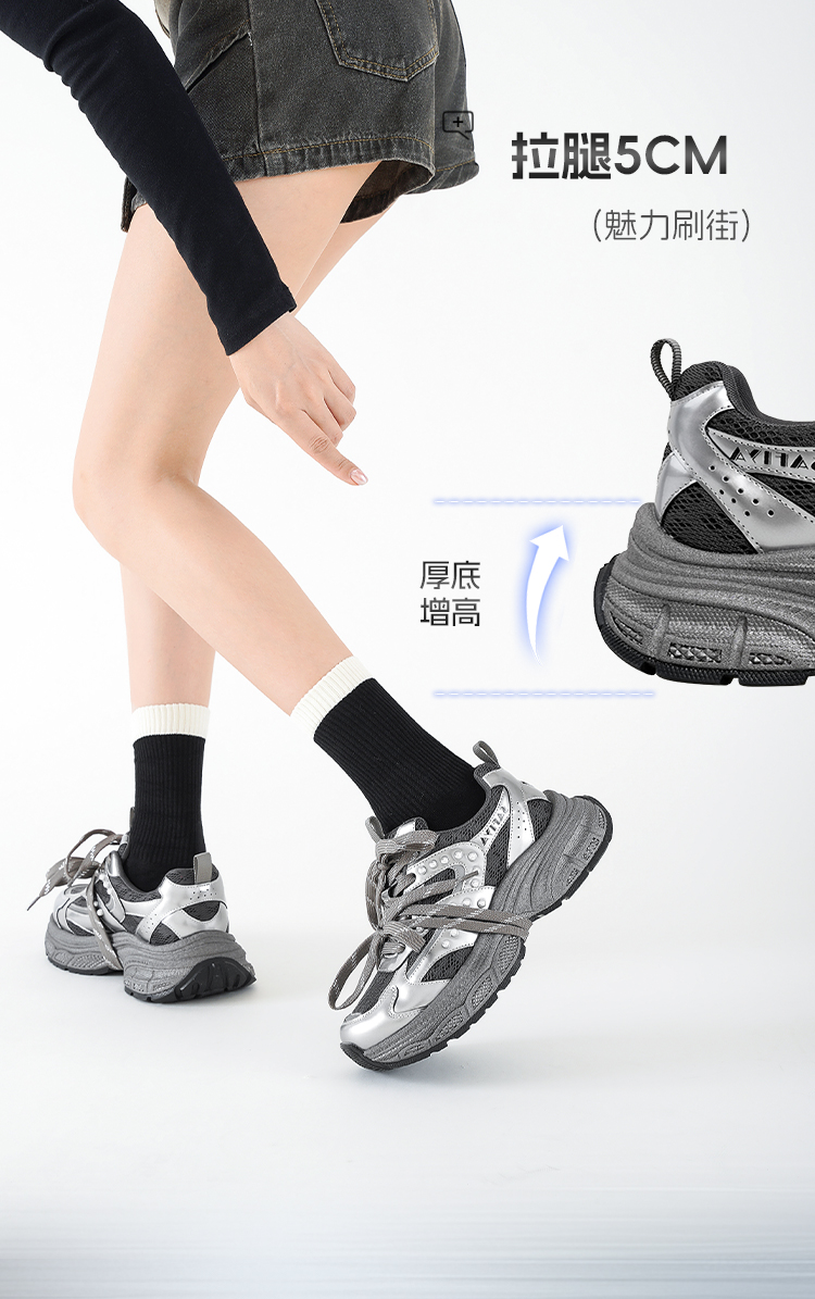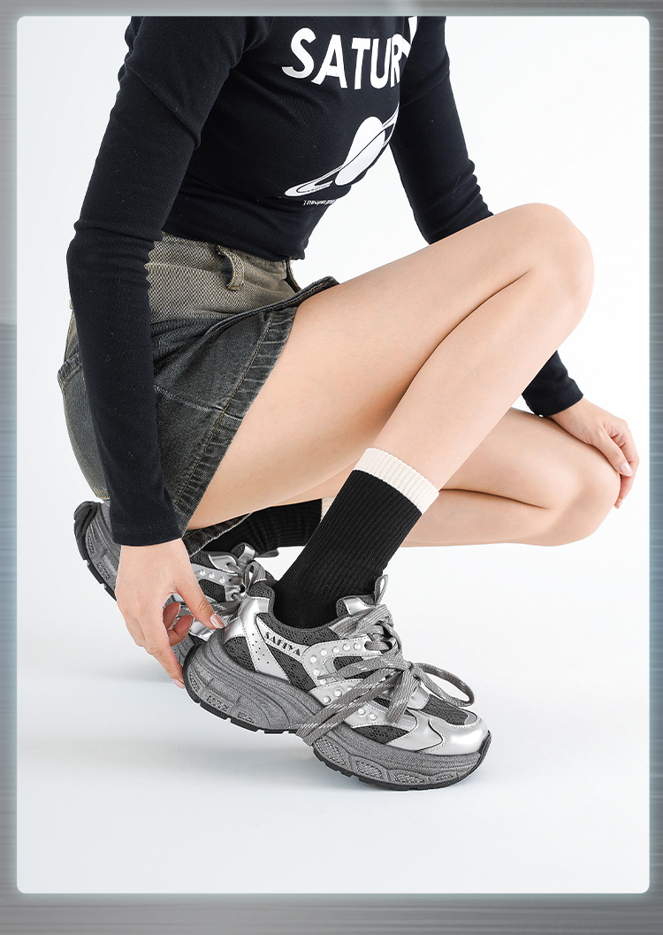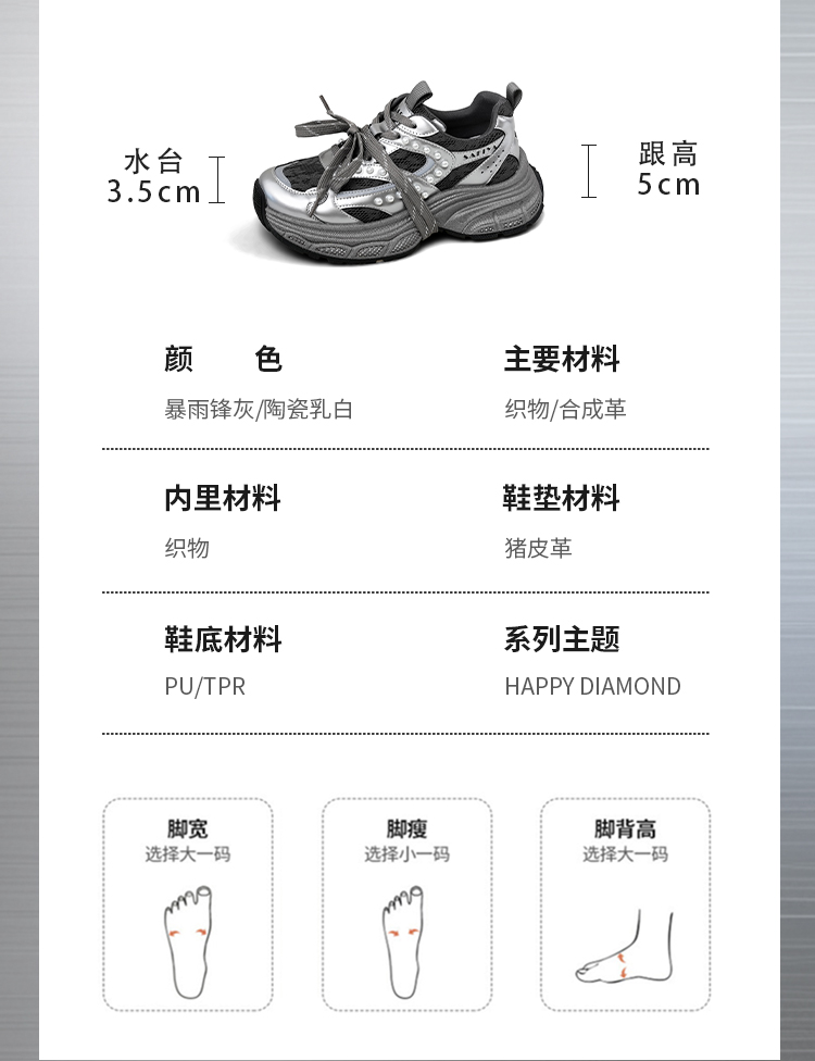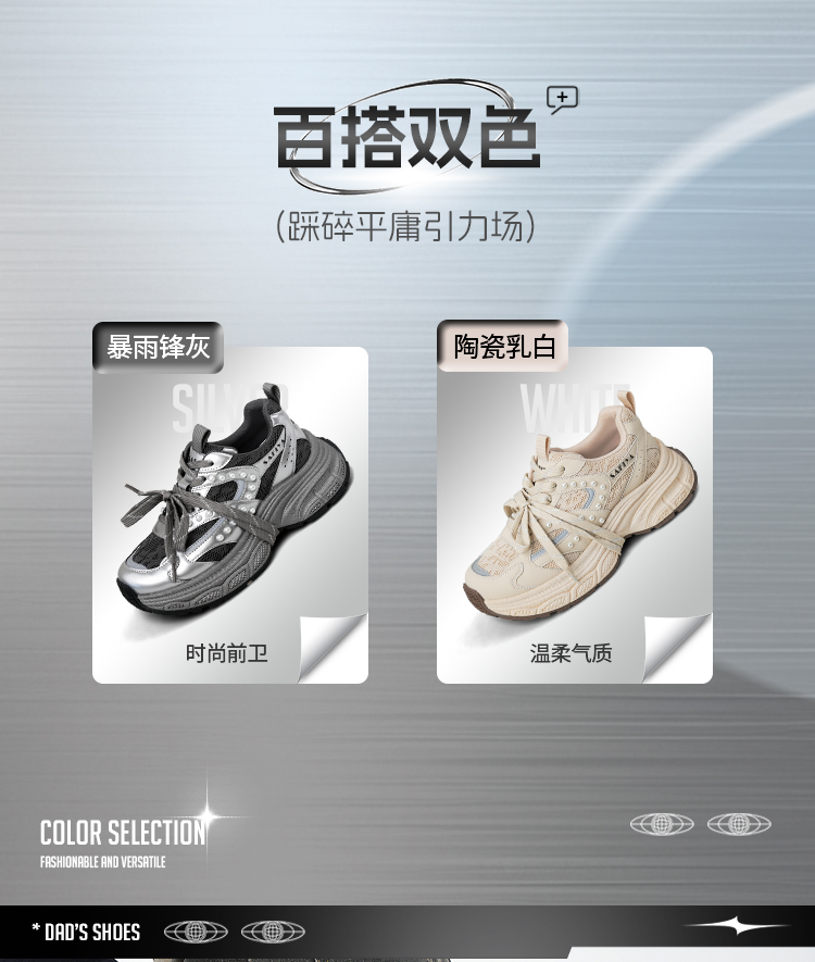 Safiya/索菲娅2025时尚珍珠网面透气增高厚底运动休闲老爹鞋SFD3112125
