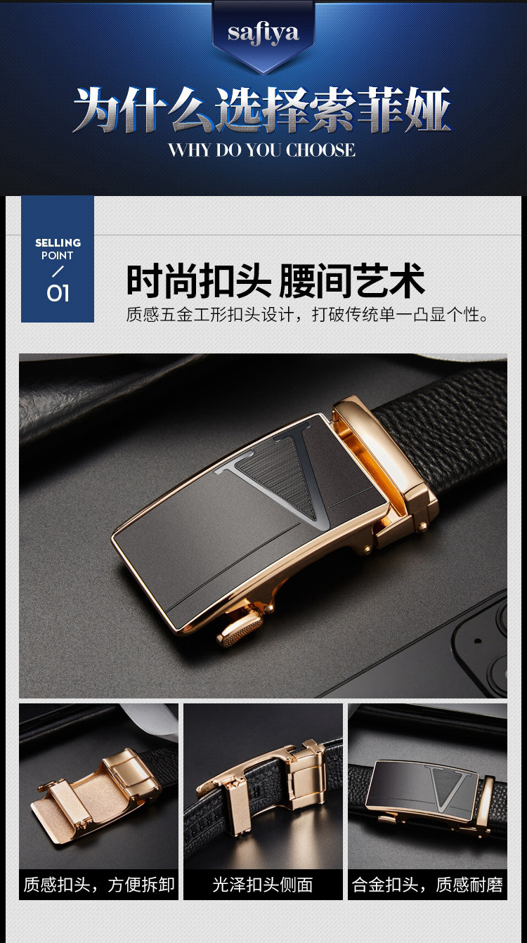 Safiya/索菲娅 2023新款头层牛皮男士皮带腰带自动扣男皮带腰带SF500022Y