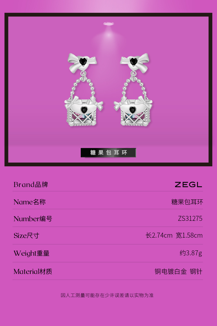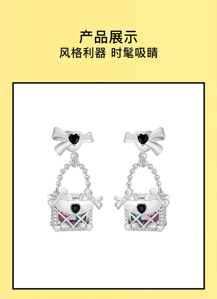 ZEGL设计师mini包包系列蝴蝶结耳钉女2022年新款耳环925银针耳饰