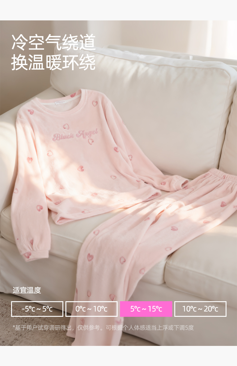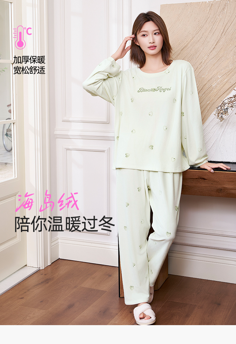 【商场同款】熳洁儿 海岛绒家居服秋冬新款圆领套装爱心25703401