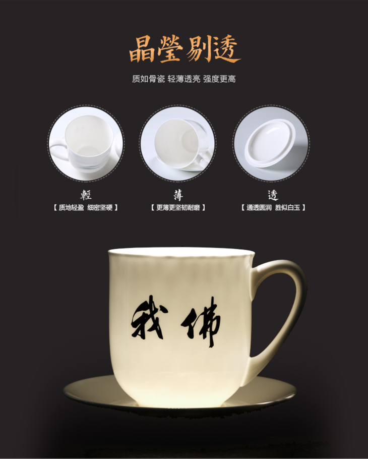 我佛瓷杯 骨瓷双盖杯 陶瓷水杯