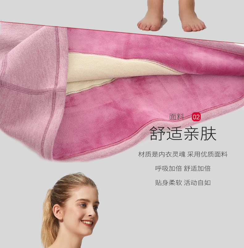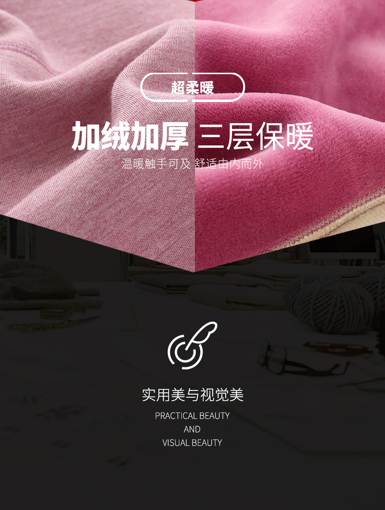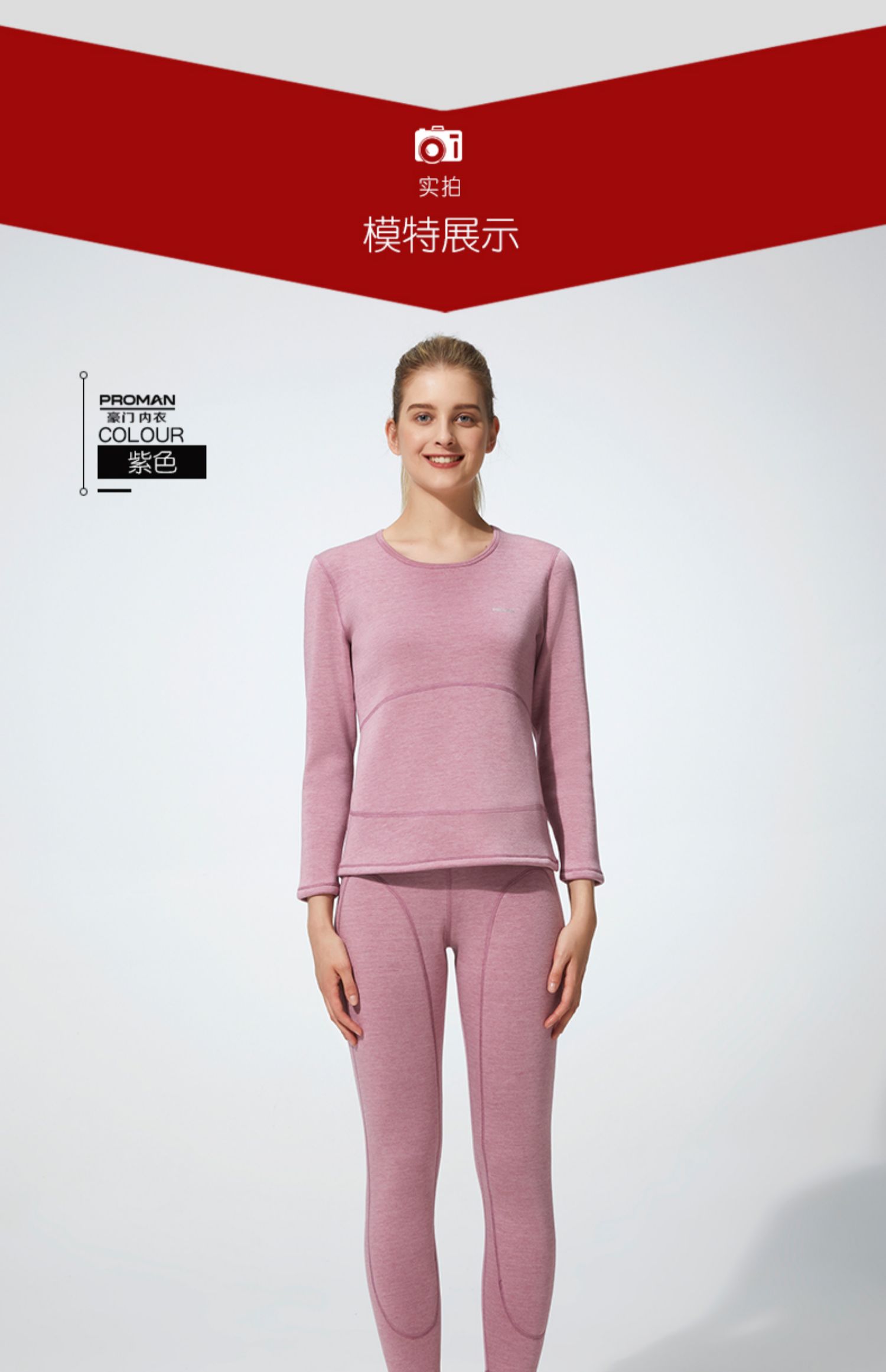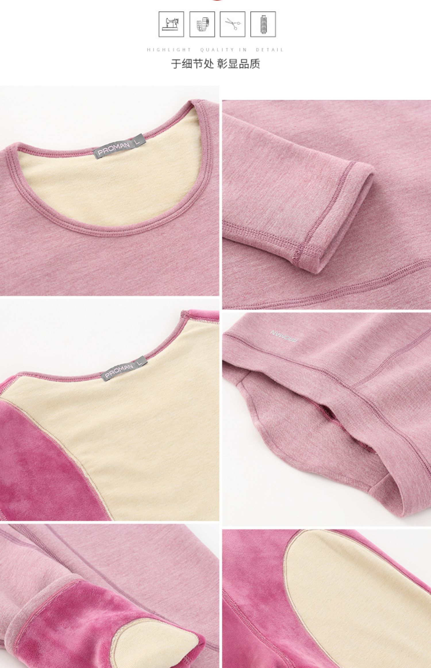 豪门女士圆领保暖内衣套装加绒加厚中老年防寒套装冬季女