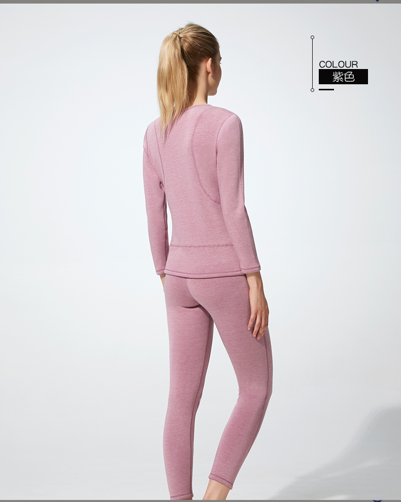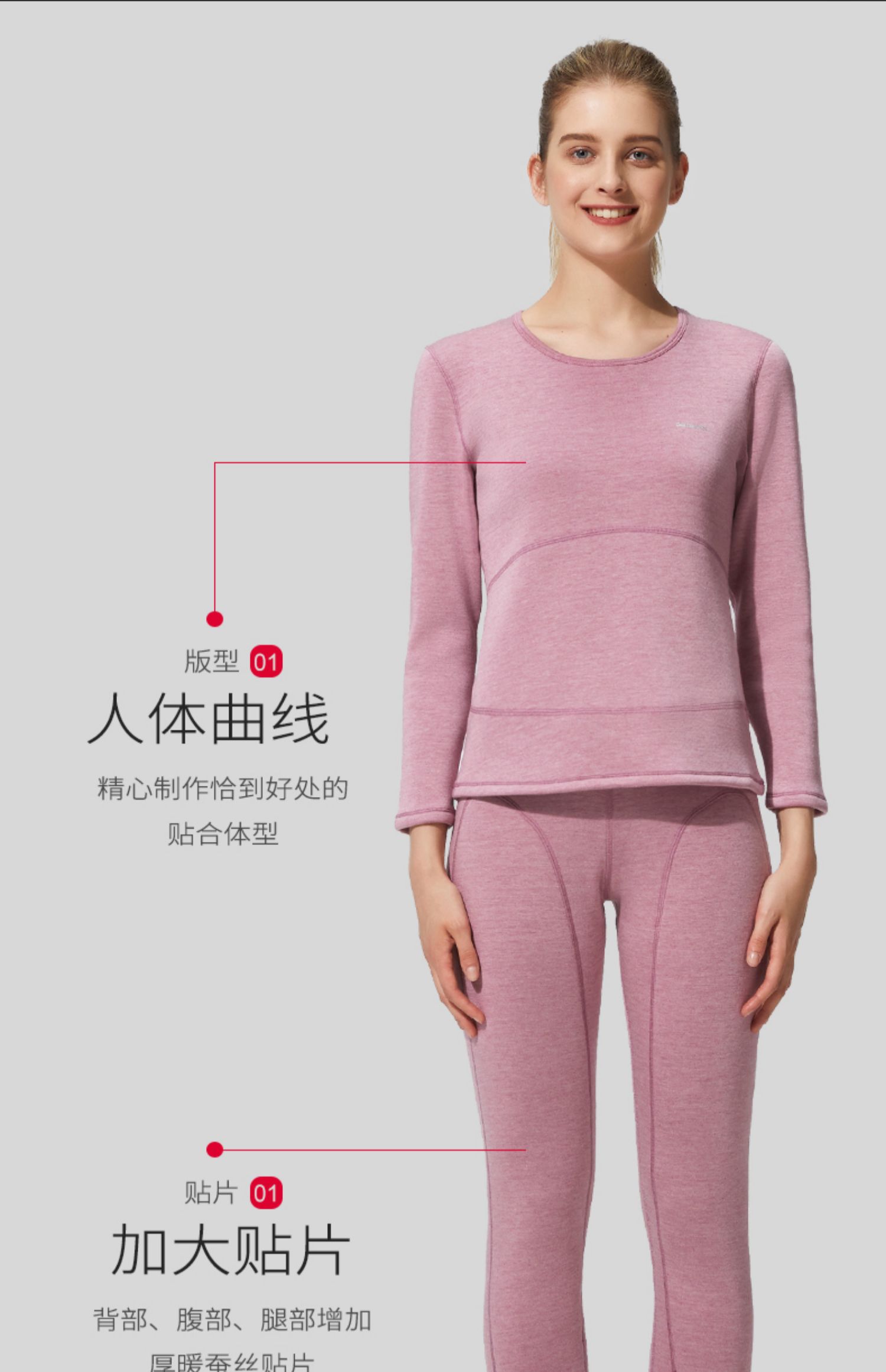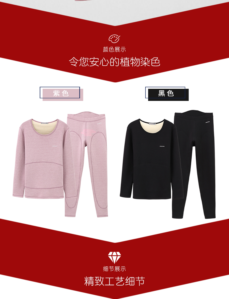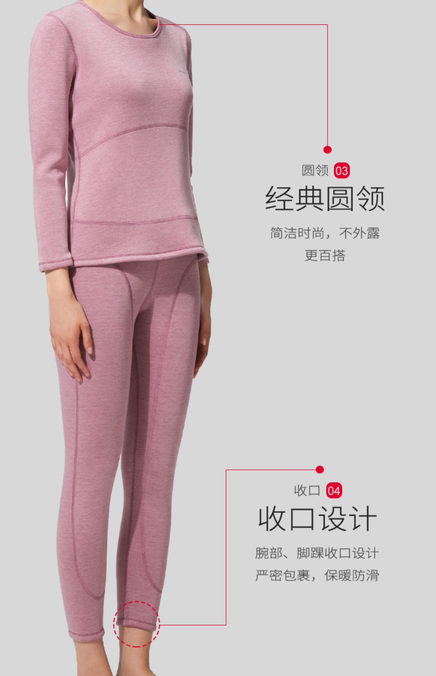 豪门女士圆领保暖内衣套装加绒加厚中老年防寒套装冬季女