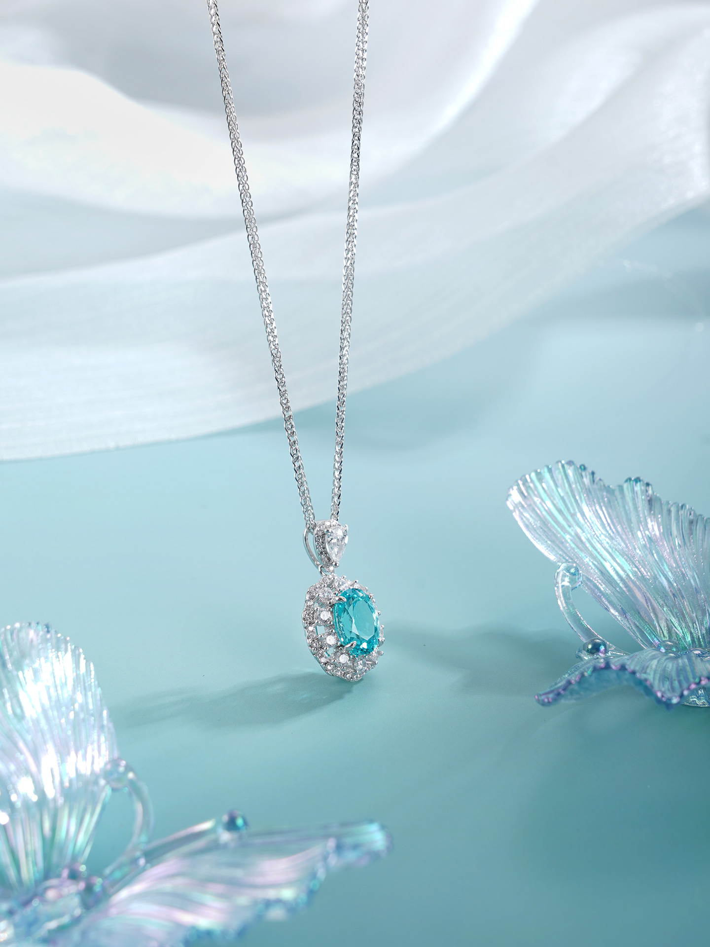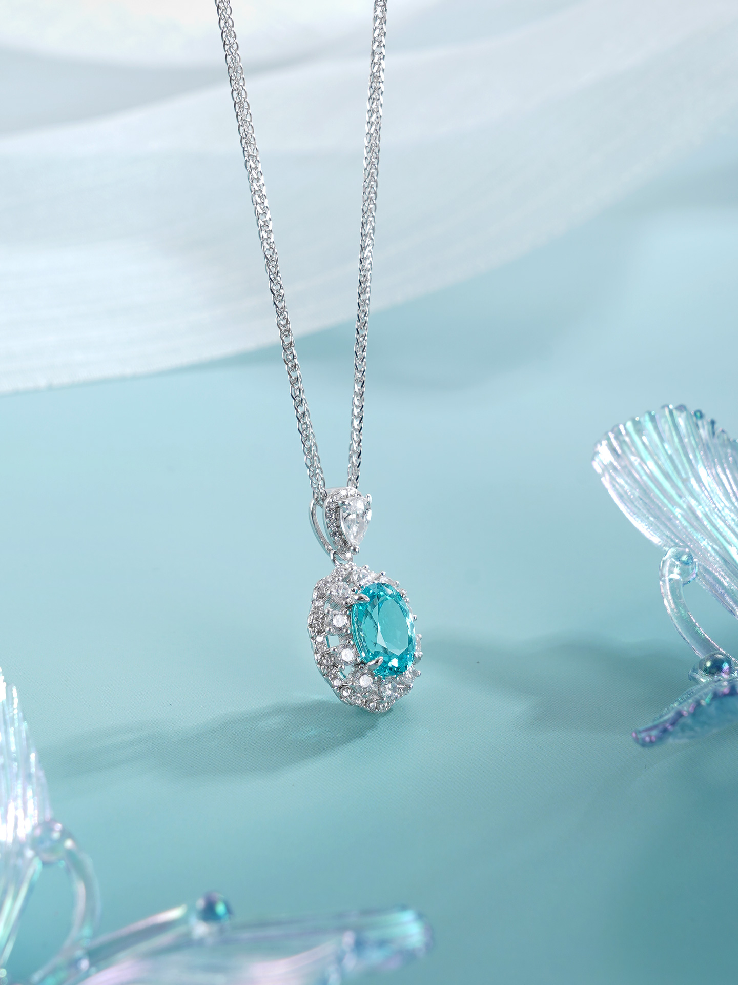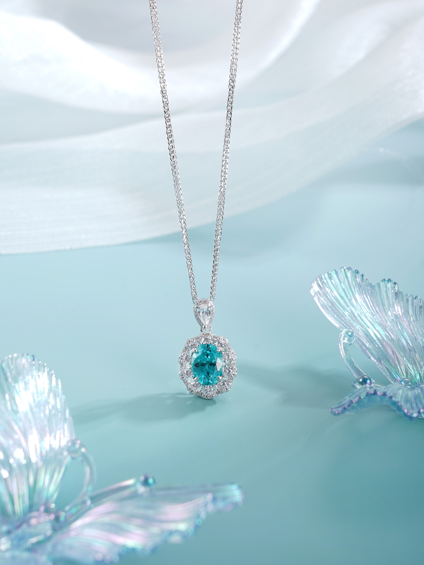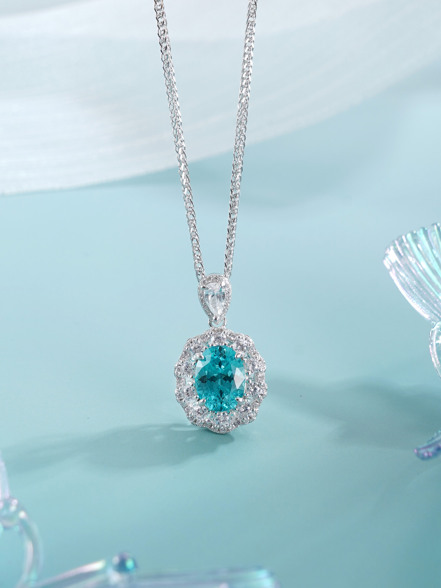子佩集【蓝悦凝福】S925银套链【PM2221-XF】培育宝石帕拉伊巴蓝碧玺大椭圆2510