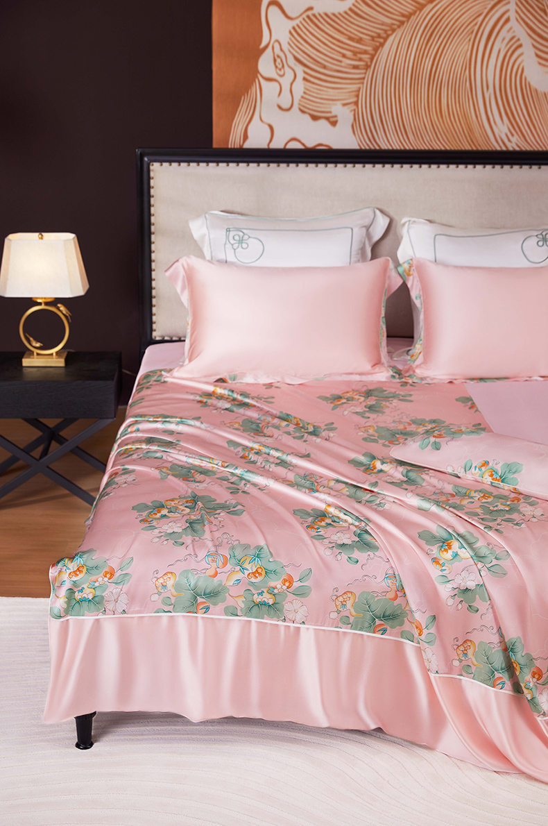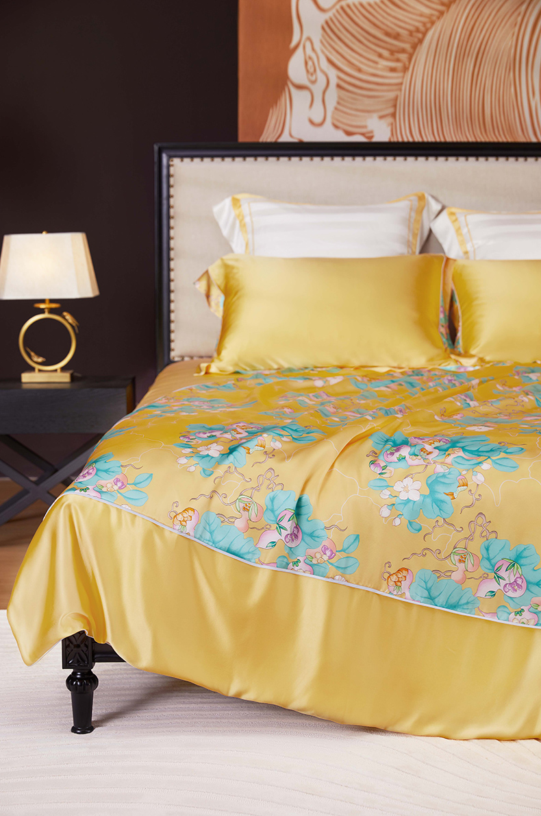 被子内里采用双层纱布包裹绗缝的工艺,将蚕丝均匀固定,增加了被子的美观和耐用性。