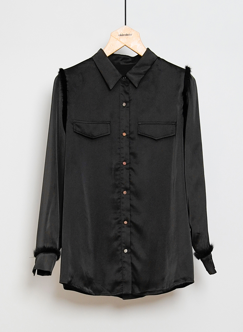 oldcolour黑色时尚通勤百搭OL职场长袖衬衫女O43013301