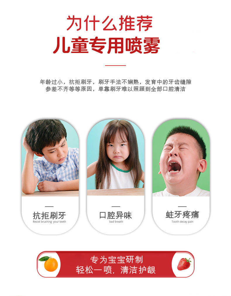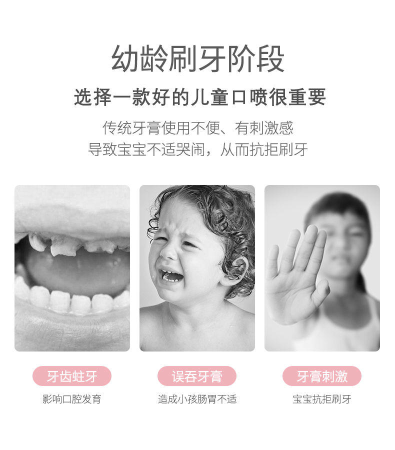 儿童护牙喷雾婴幼儿口腔乳牙防蛀牙黑黄可吞咽抖音牙膏