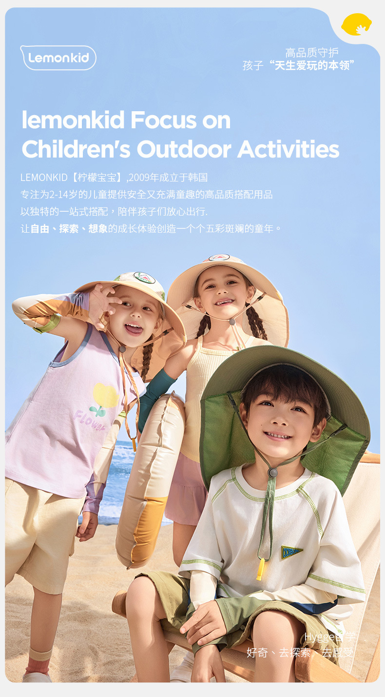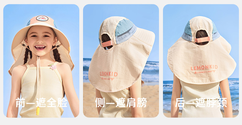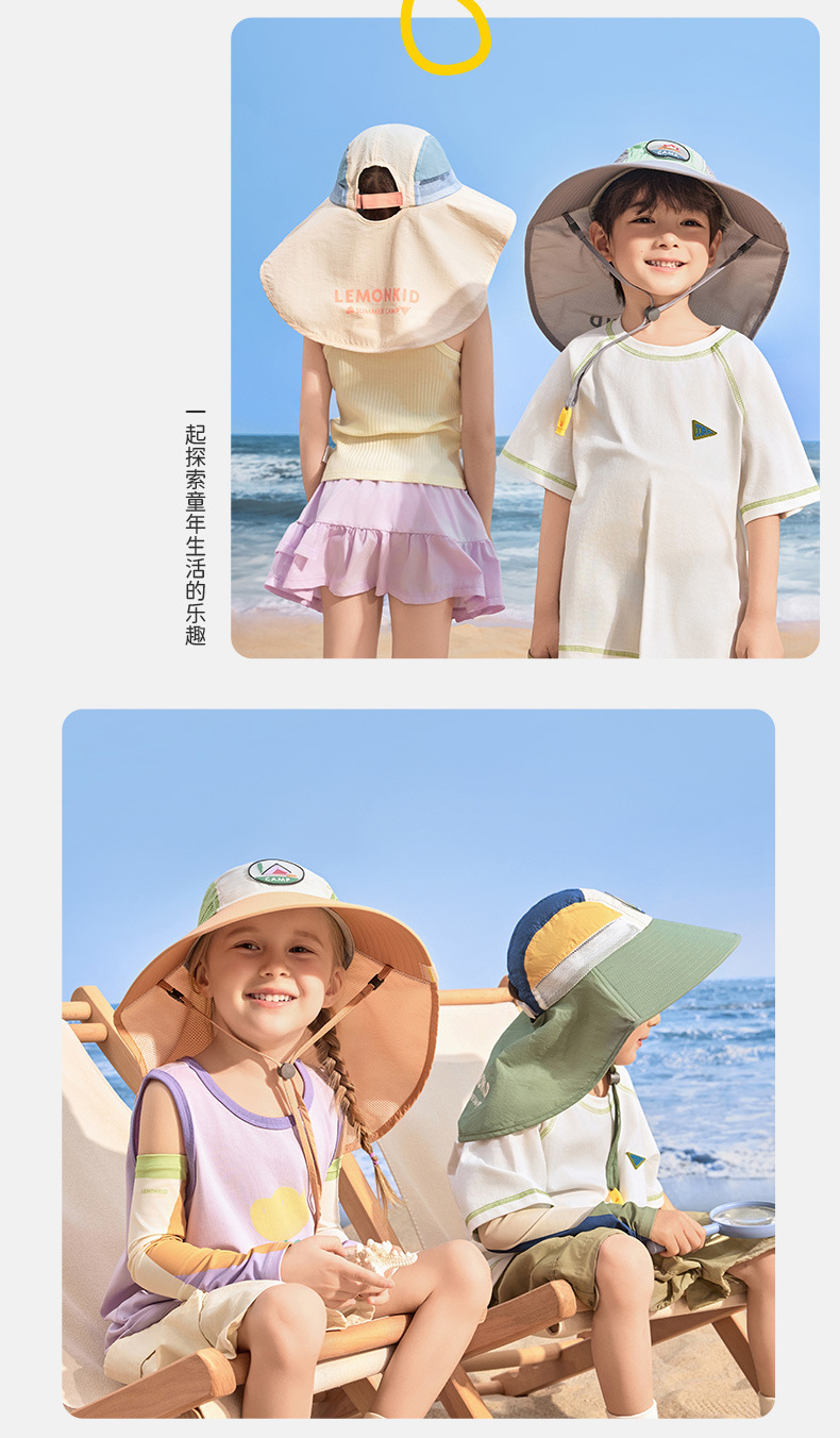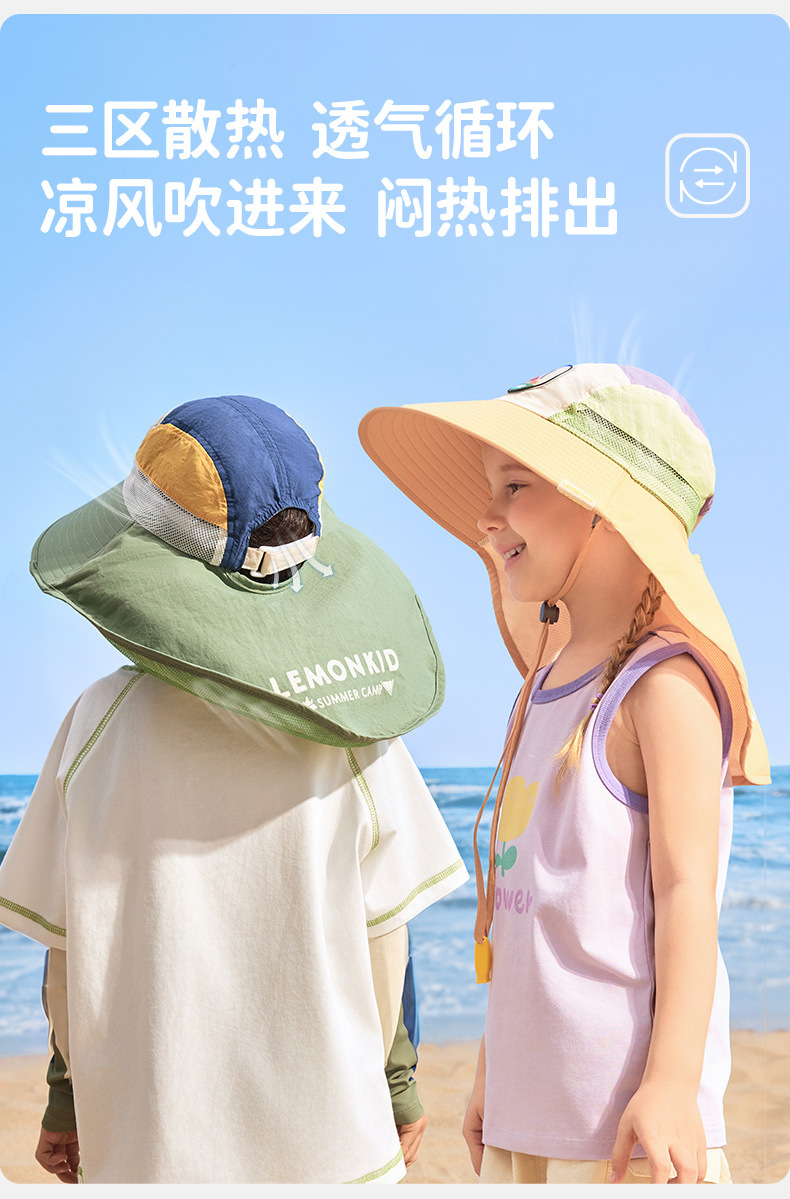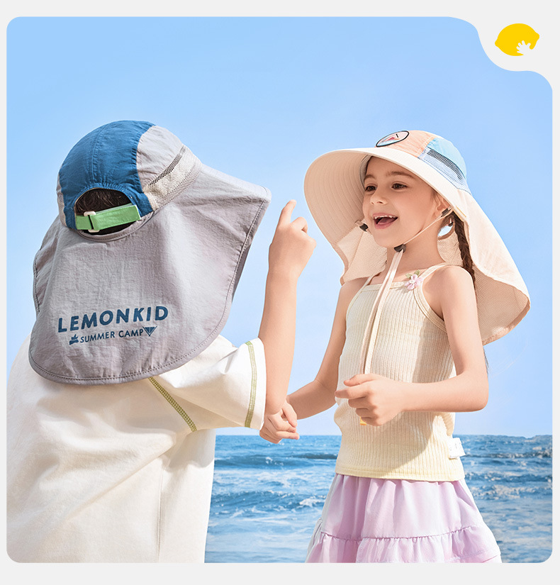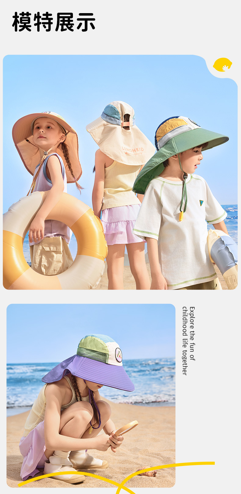 【与辉同行同款49.9/件】柠檬宝宝儿童防晒帽男童女童大帽檐防紫外线太阳帽沙滩遮阳帽2025聚