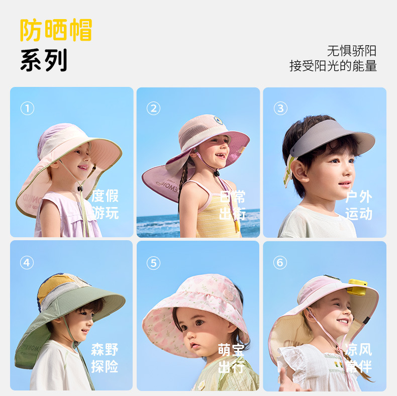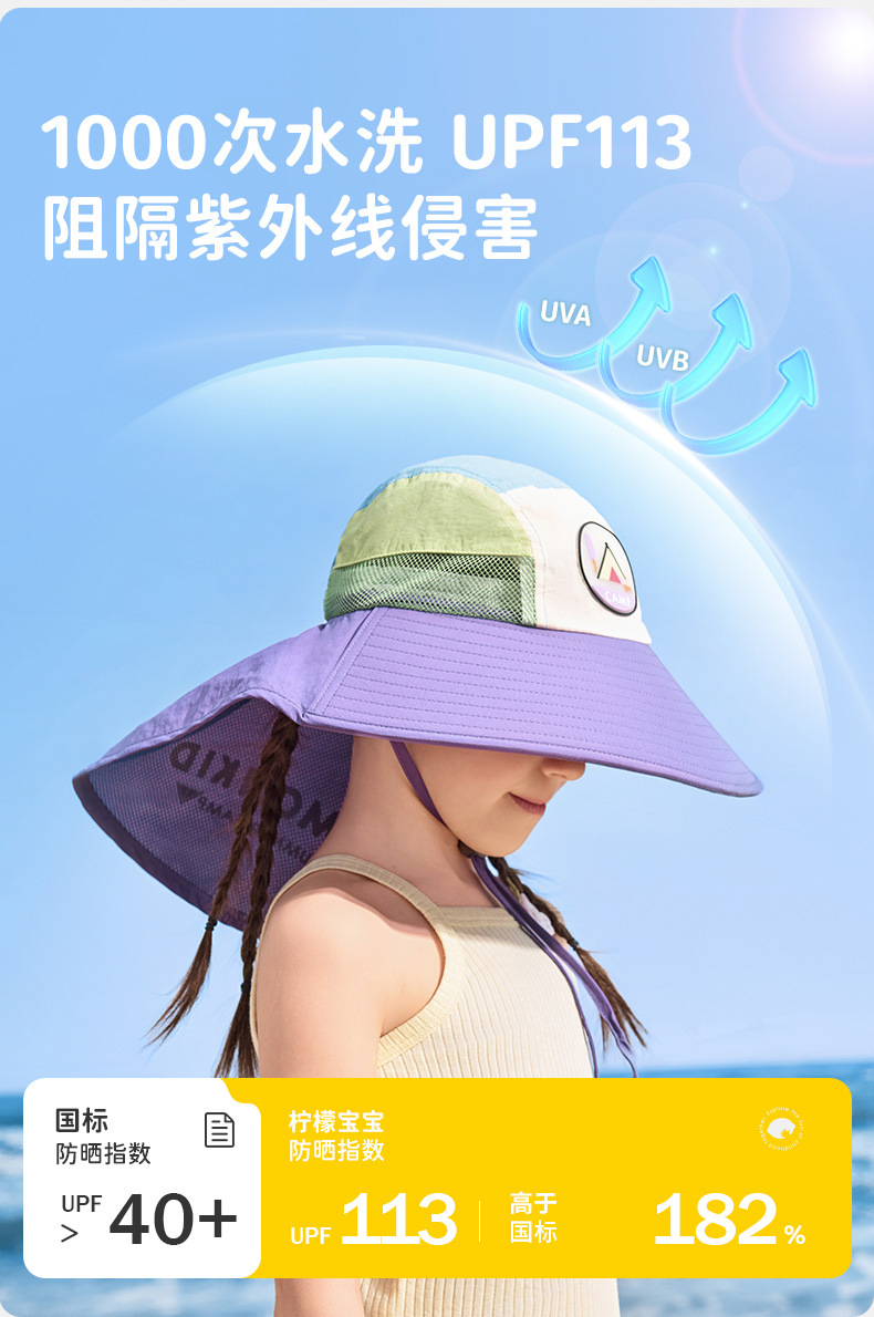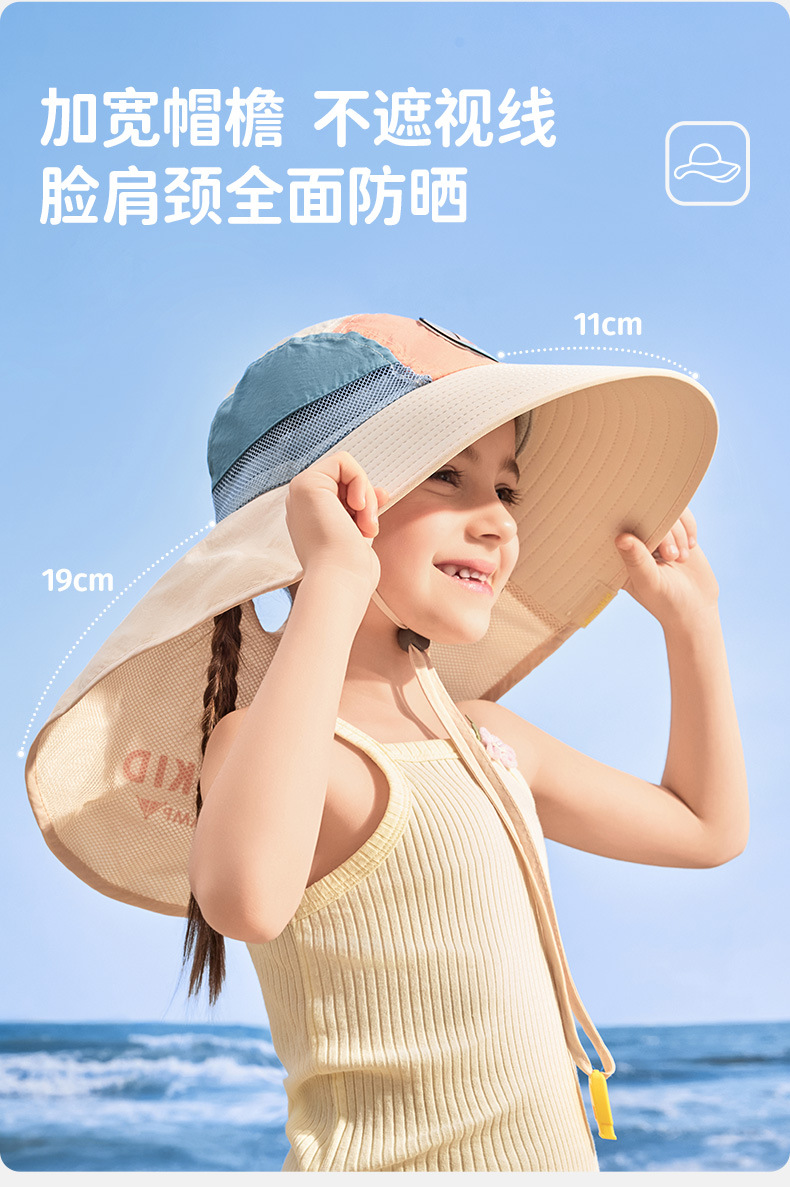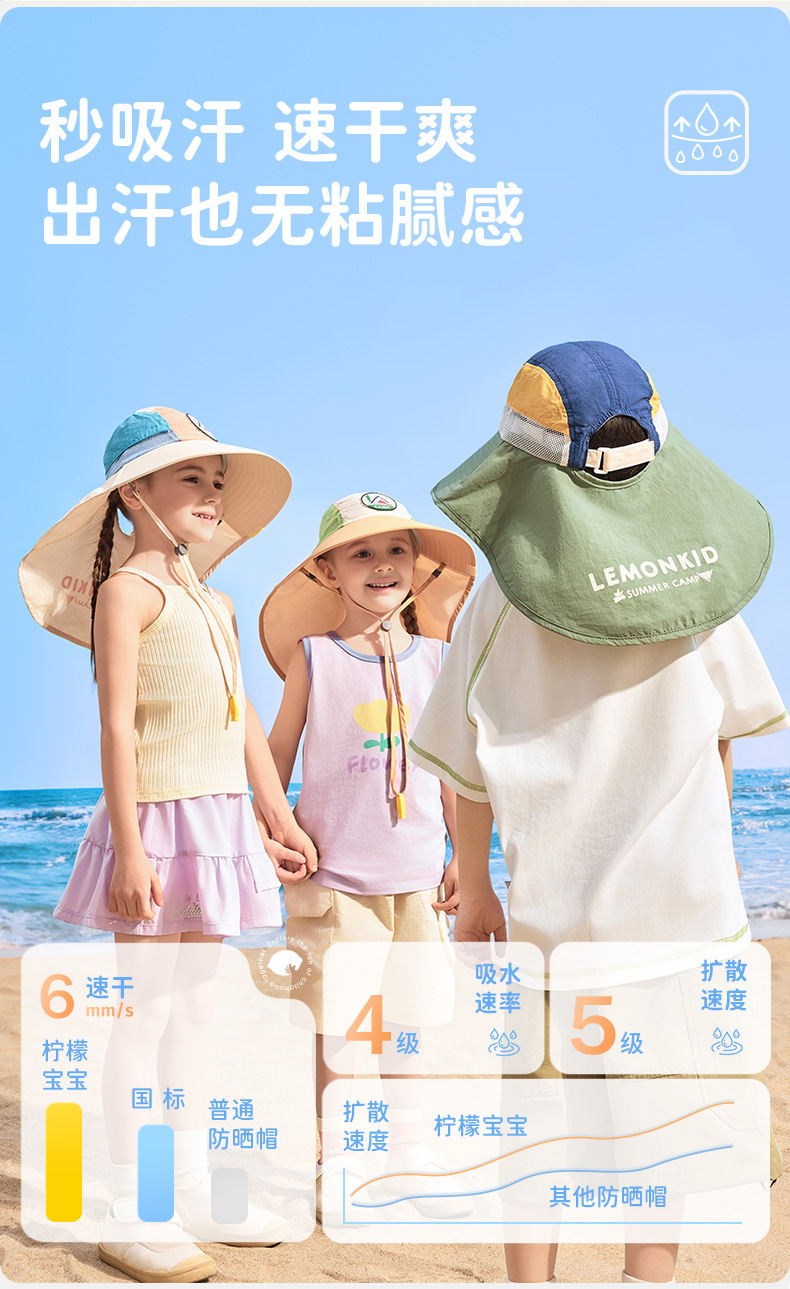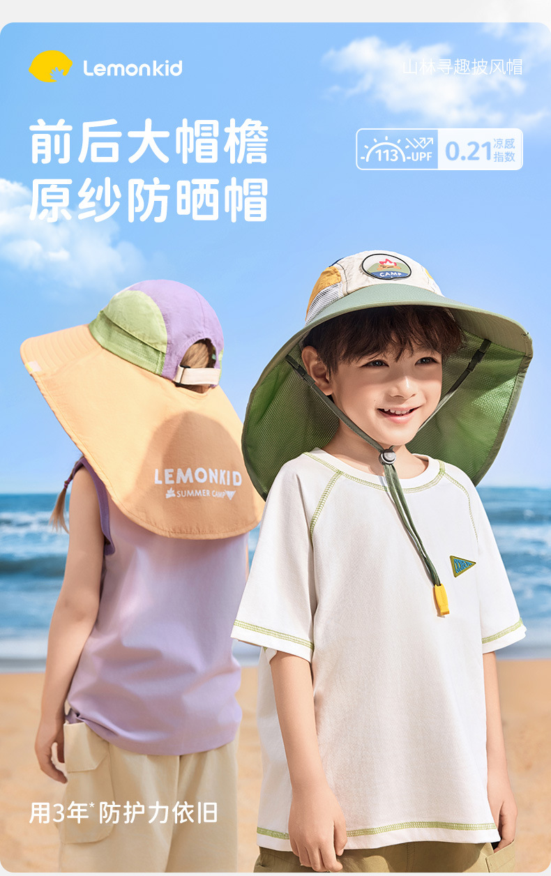 【与辉同行同款49.9/件】柠檬宝宝儿童防晒帽男童女童大帽檐防紫外线太阳帽沙滩遮阳帽2025聚