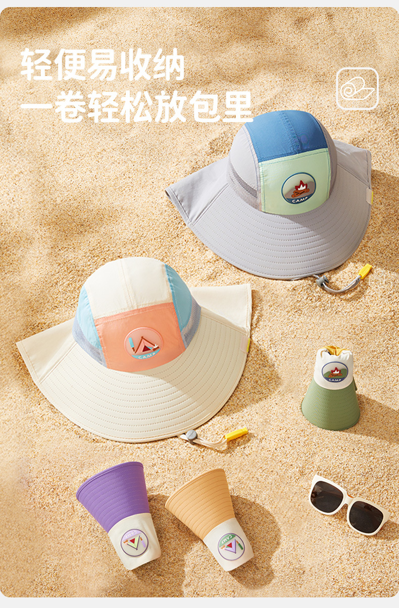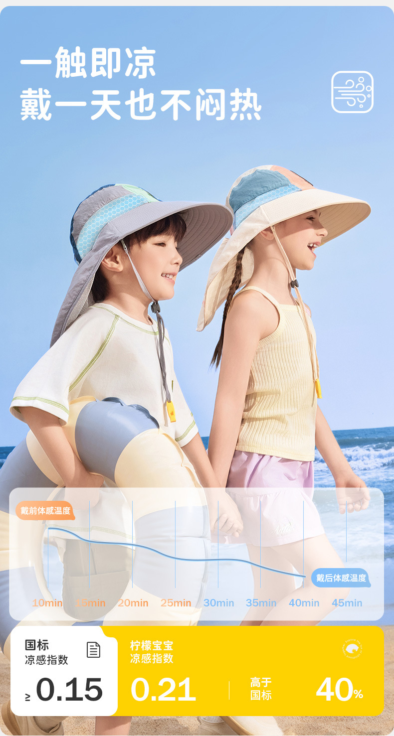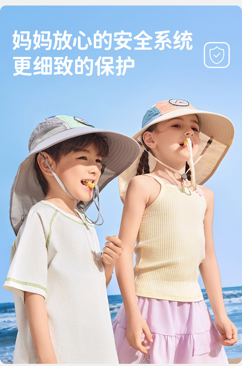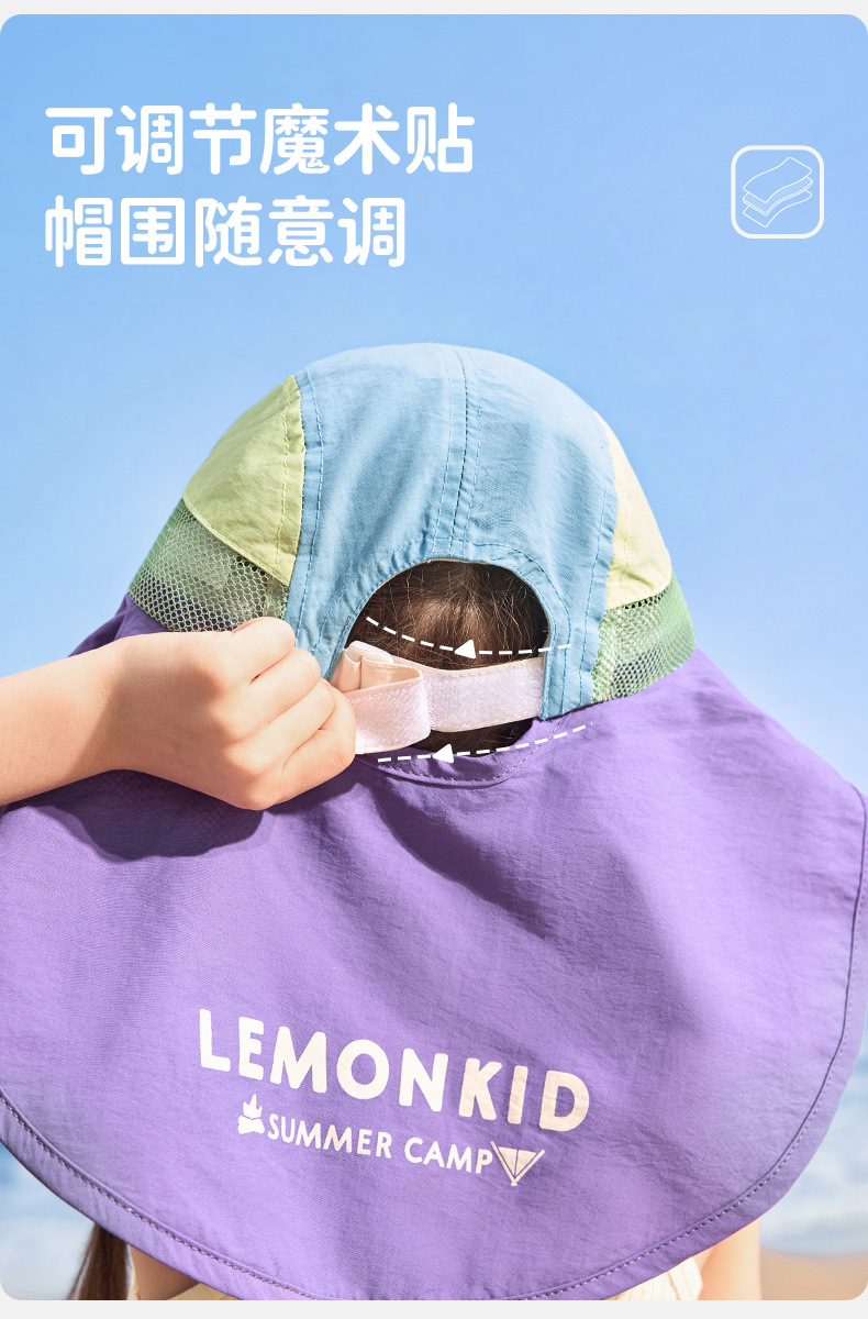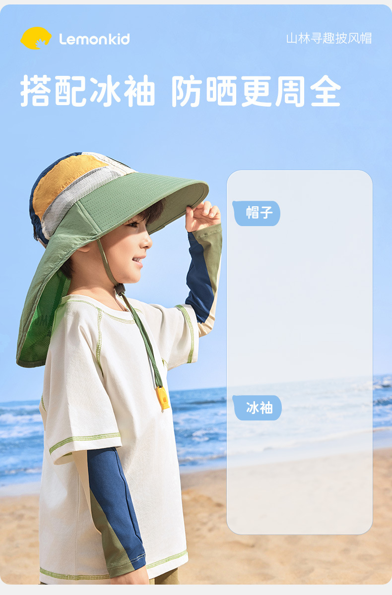 【与辉同行同款49.9/件】柠檬宝宝儿童防晒帽男童女童大帽檐防紫外线太阳帽沙滩遮阳帽2025聚