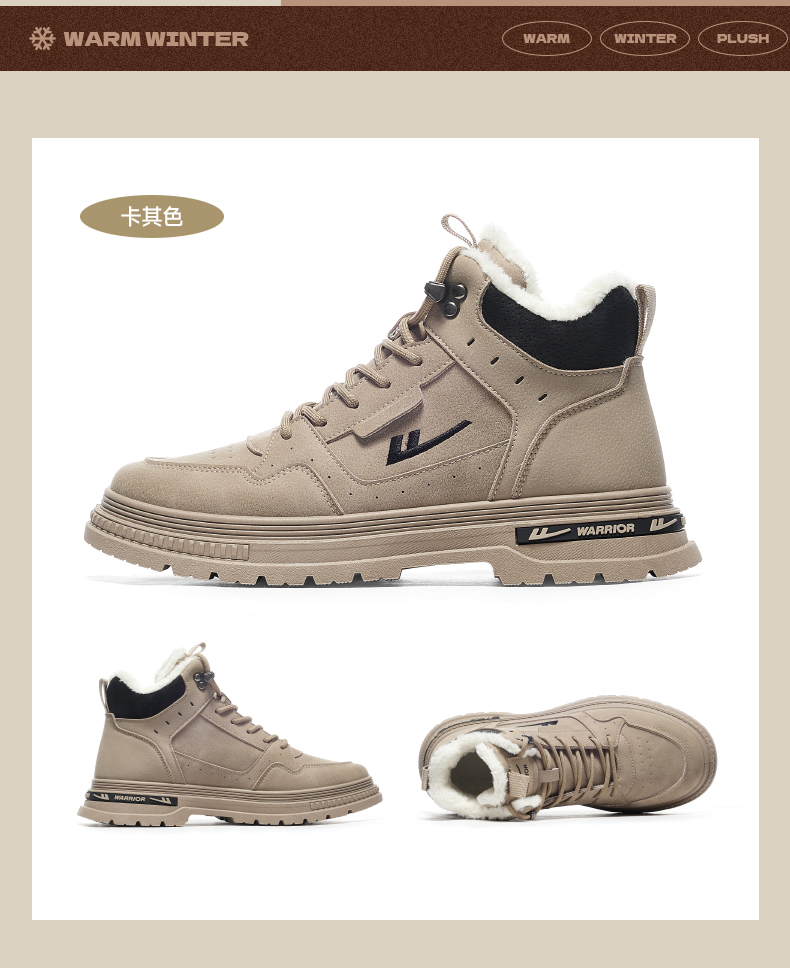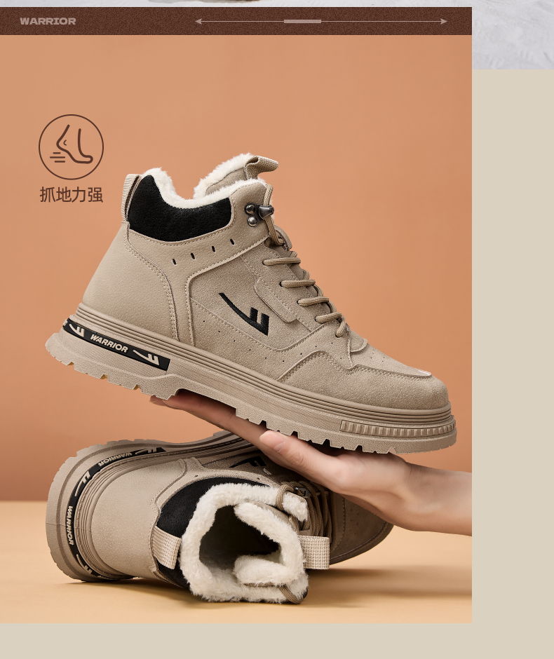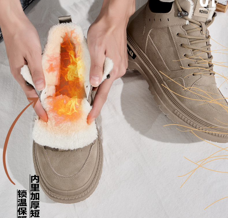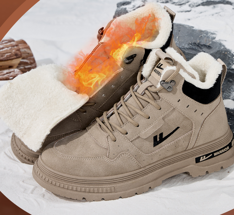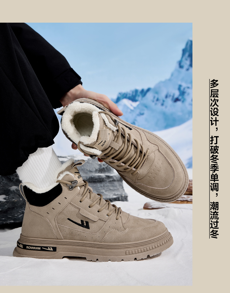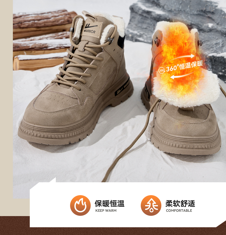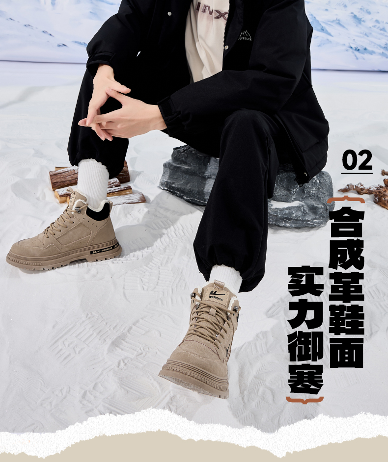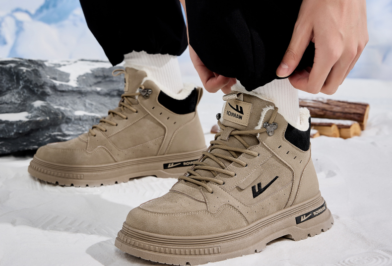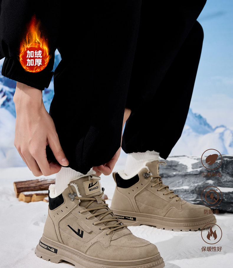 回力男鞋工装鞋秋冬季2024新款高帮加绒棉鞋户外登山鞋马丁靴男款