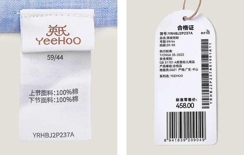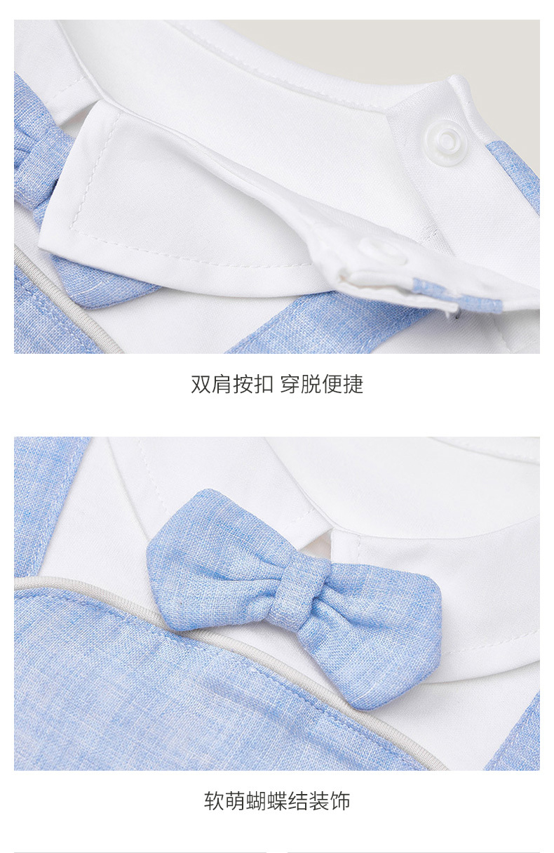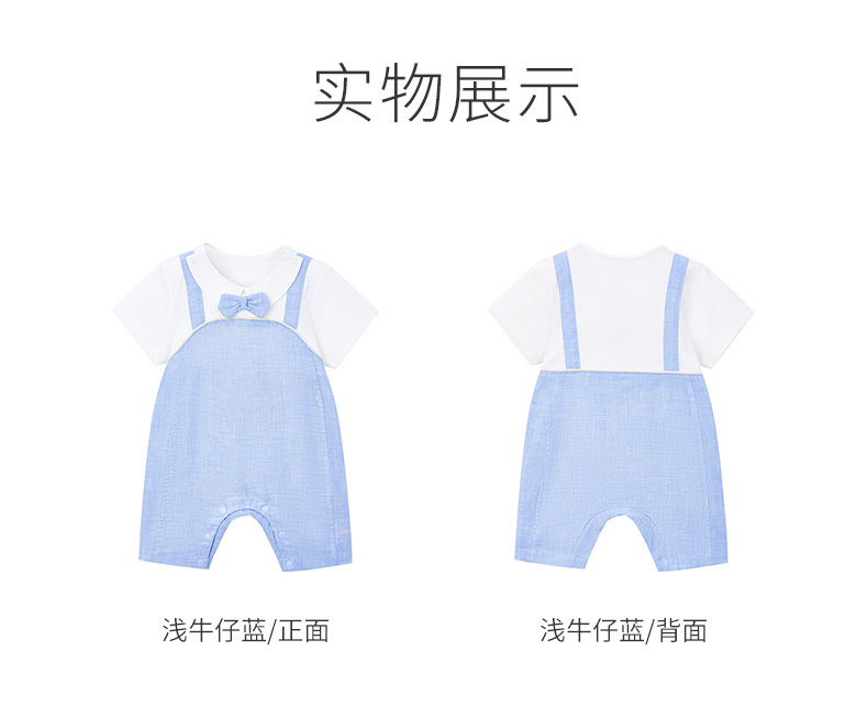 英氏23夏款男宝宝纯棉翻领假2件带领结短袖连体衣YRHBJ2P237A