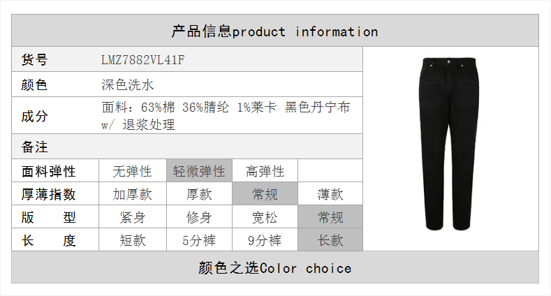 【腰围28,29断码】LEE都市骑士系列男士立体剪裁牛仔裤舒适中腰小直脚LMZ7882VL41F