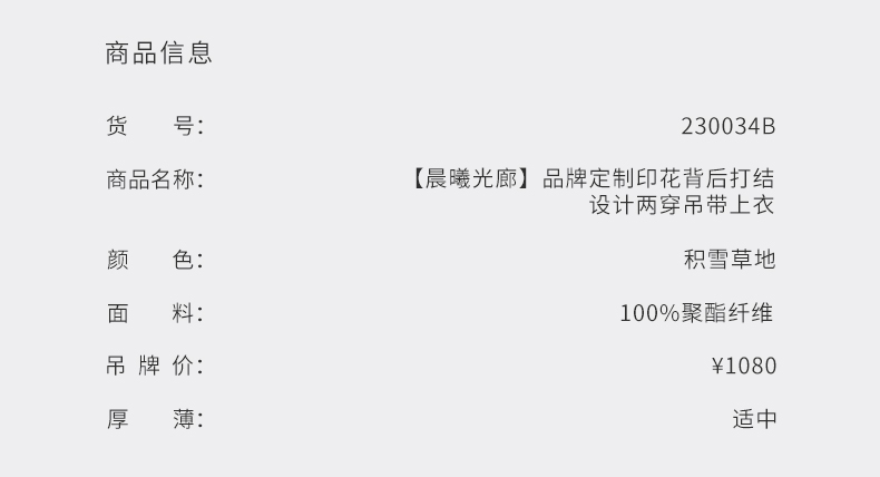 【晨曦光廊】品牌定制印花背后打结设计两穿吊带上衣/230034B