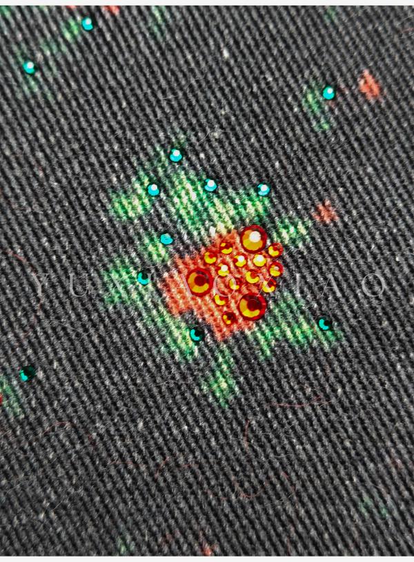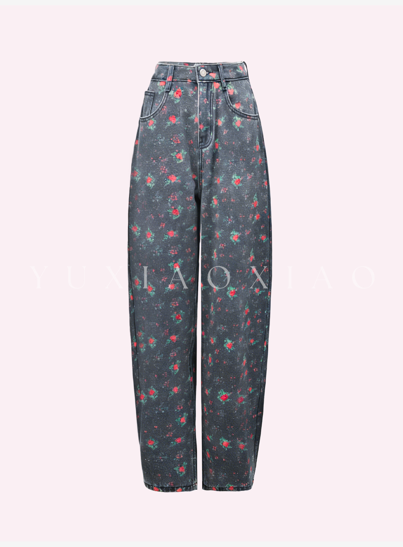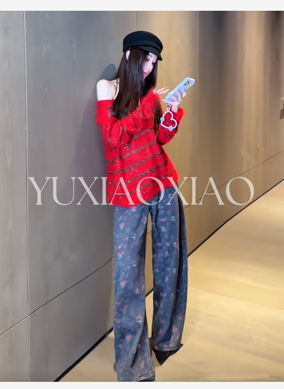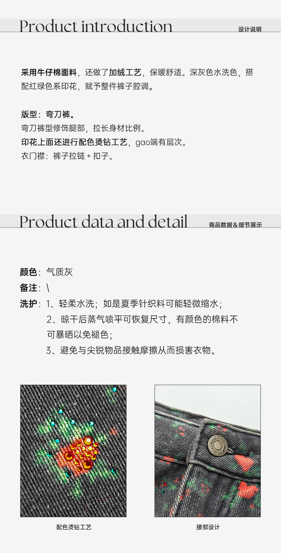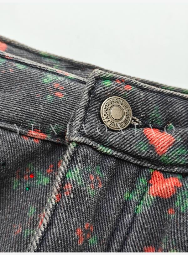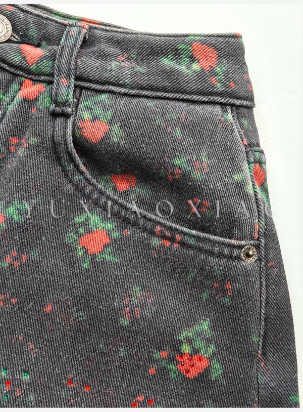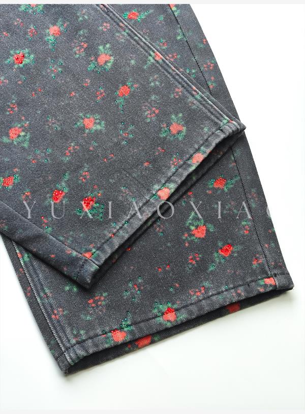 余潇潇【玫瑰晚报】牛仔棉烫钻印花层次感加绒弯刀牛仔裤保暖舒适