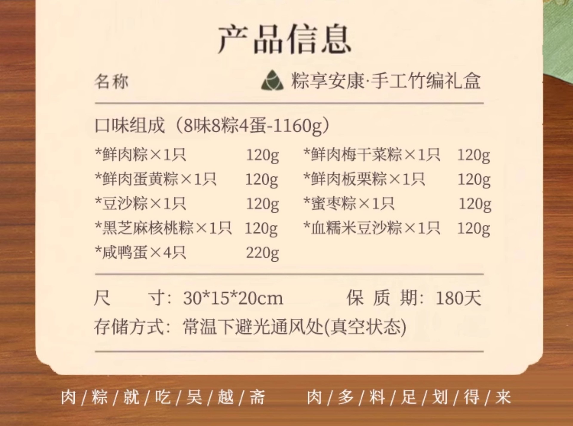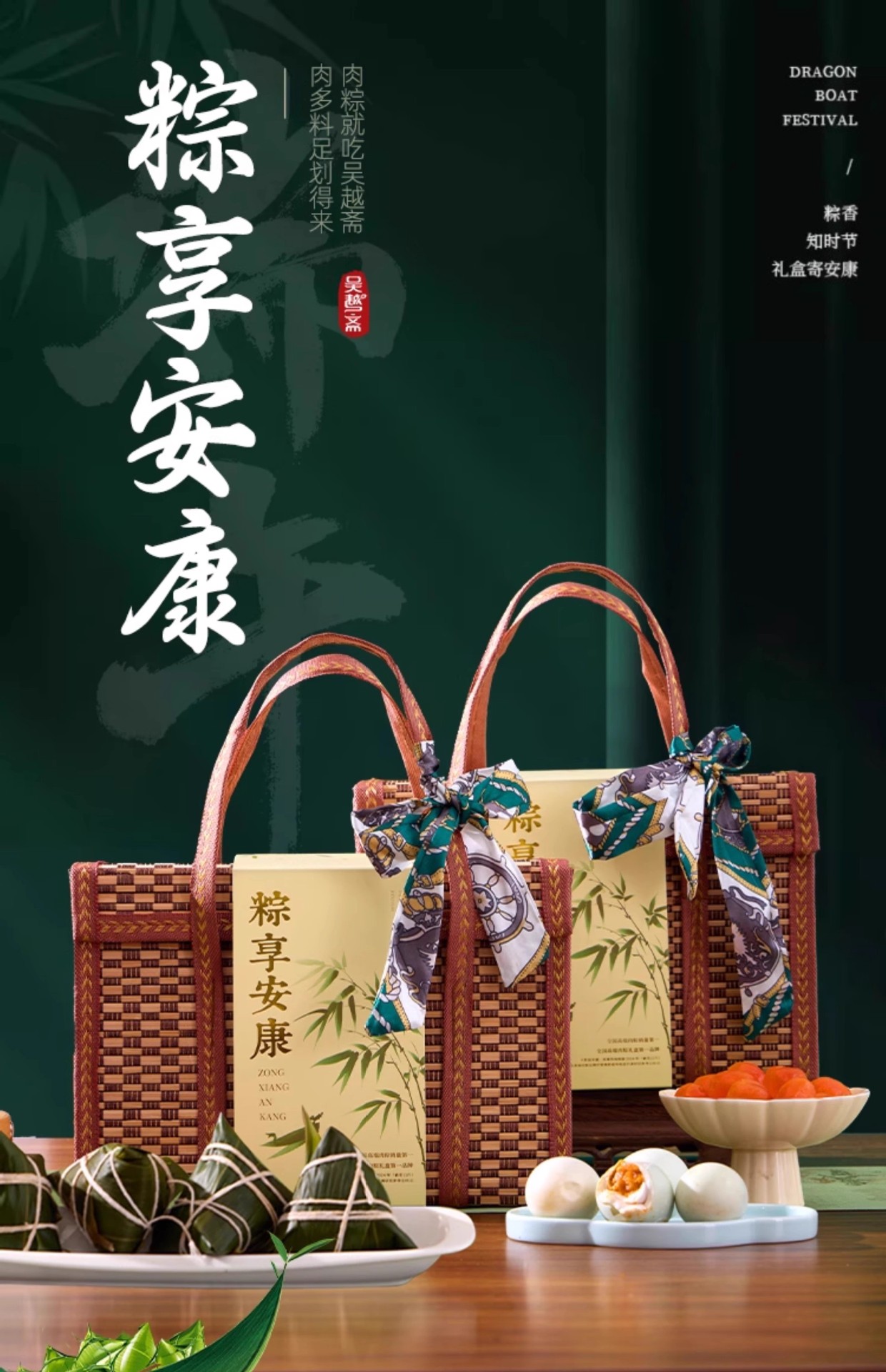 【手工竹编提篮】吴越同舟肉粽 粽子特产送礼 送家人朋友员工礼品鲜肉粽
