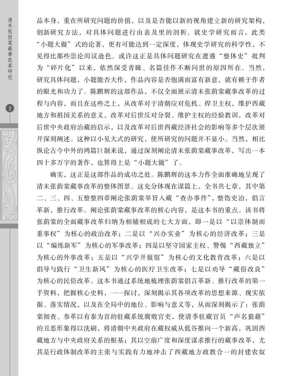 本书以清末张荫棠藏事改革为研究对象,拟在前人研究基础上继续拓展、深化,以期优选限度地对张荫棠藏事改革的各项具体内容及与改革密切相关的各个方面加以综合的、全面的考察。本书主要依据张荫棠藏事奏牍,相关驻藏大臣的藏事奏牍,光绪、宣统两朝实录、上谕,军机处、外务部档案,西藏地方档案以及英国俄国解密档案等相关史料,对清末张荫棠藏事改革进行全面研究。