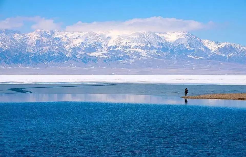 赛里木湖,是蓝色的,高山上的天空格外纯净,阳光照射在结冰的湖面上,天真蓝,冰也是蓝的,到了春天,湖面渐渐开始解冻,一半熠熠生辉,一半波光粼粼,大量碎冰被风推到岸边站在湖岸上就能触摸到蓝冰。