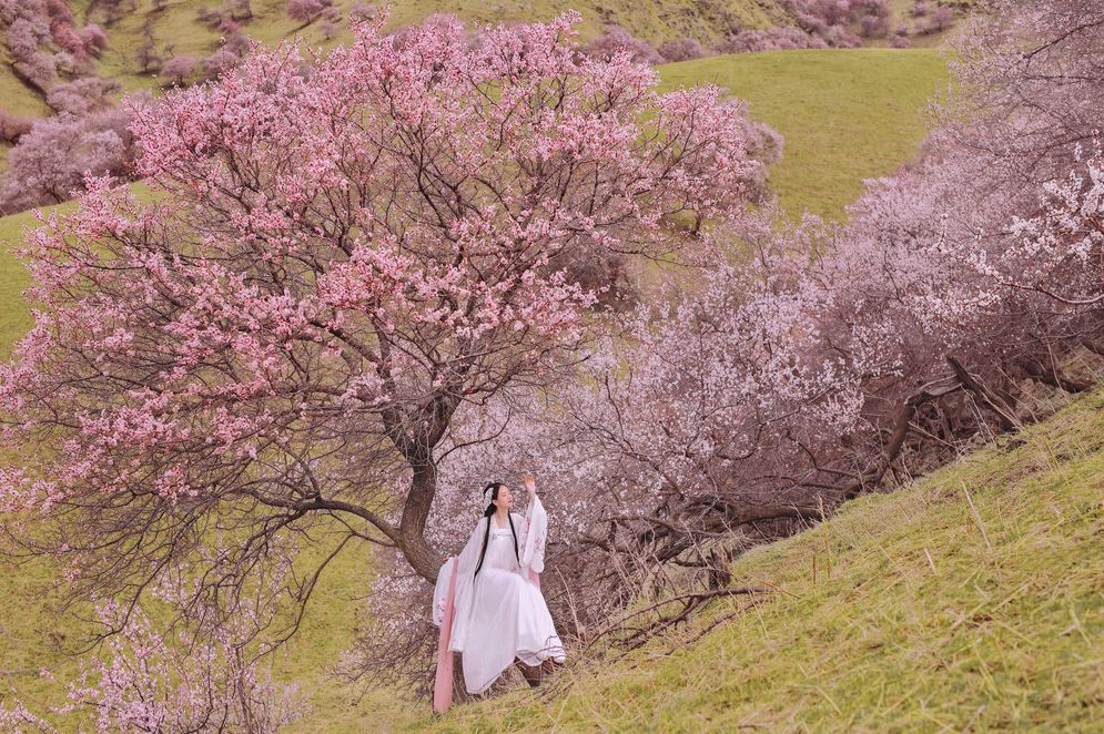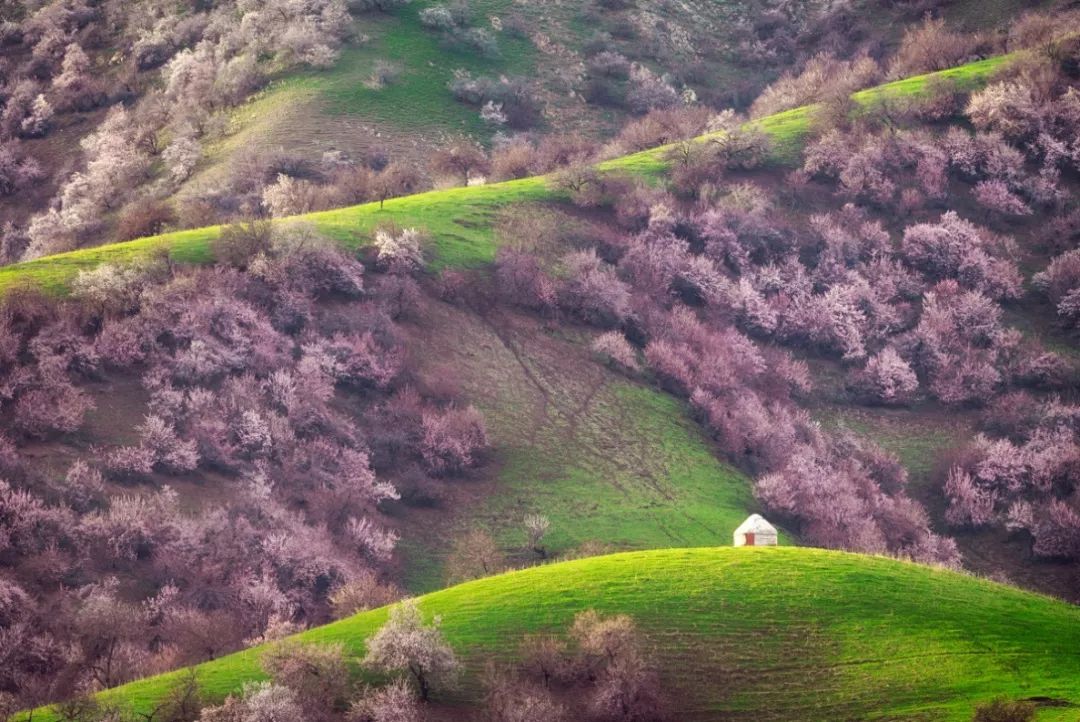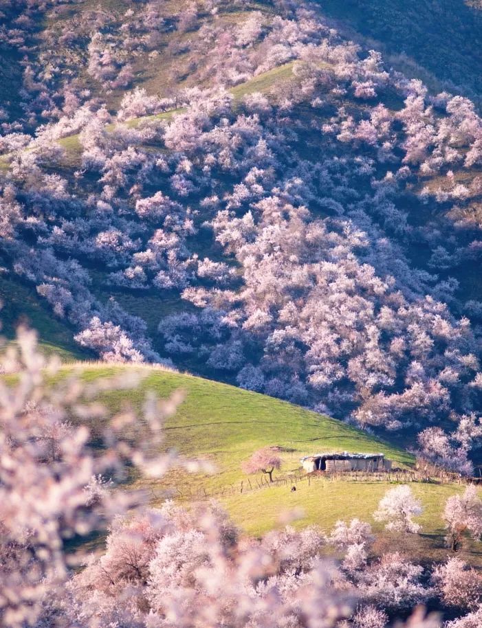 你若在3-4月来到新疆,将重新定义你对花海的认知"铺天盖地",或许是最贴切的形容在伊犁河谷两侧的天山山脉上,生长着许多从中世纪遗留下来的,原始野生杏树林,这是一条长达600多里的杏花景观长廊。