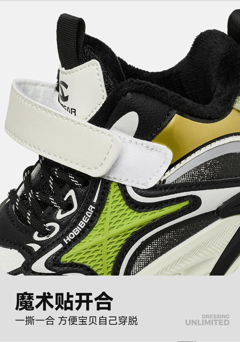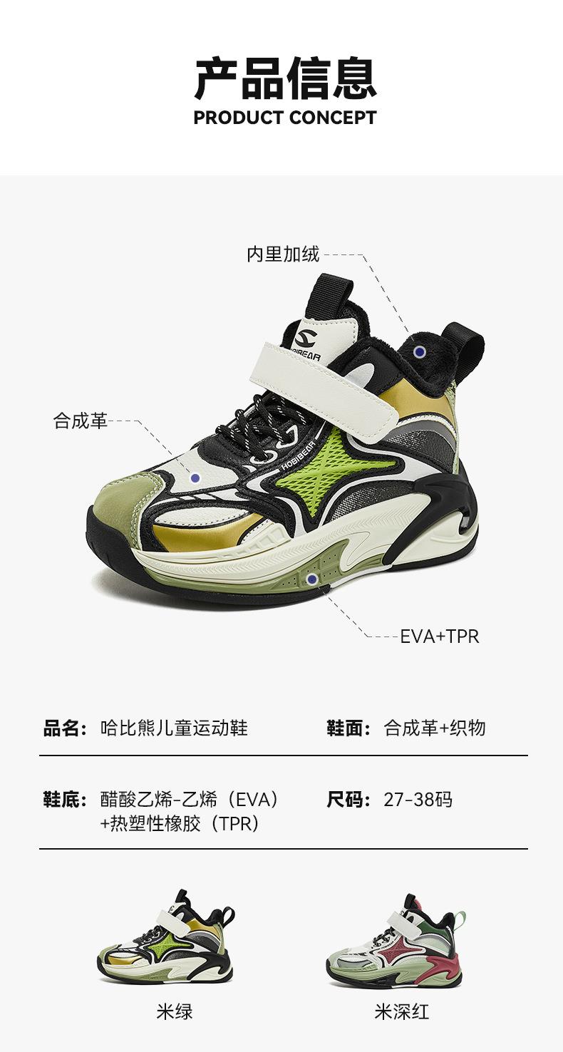 哈比熊冬季二棉童运动鞋加绒篮球鞋日常户外中大童老爹鞋