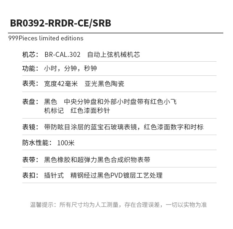 Bell & Ross 柏莱士INSTRUMENTS系列 BR0392-RRDR-CE/SRB 腕表