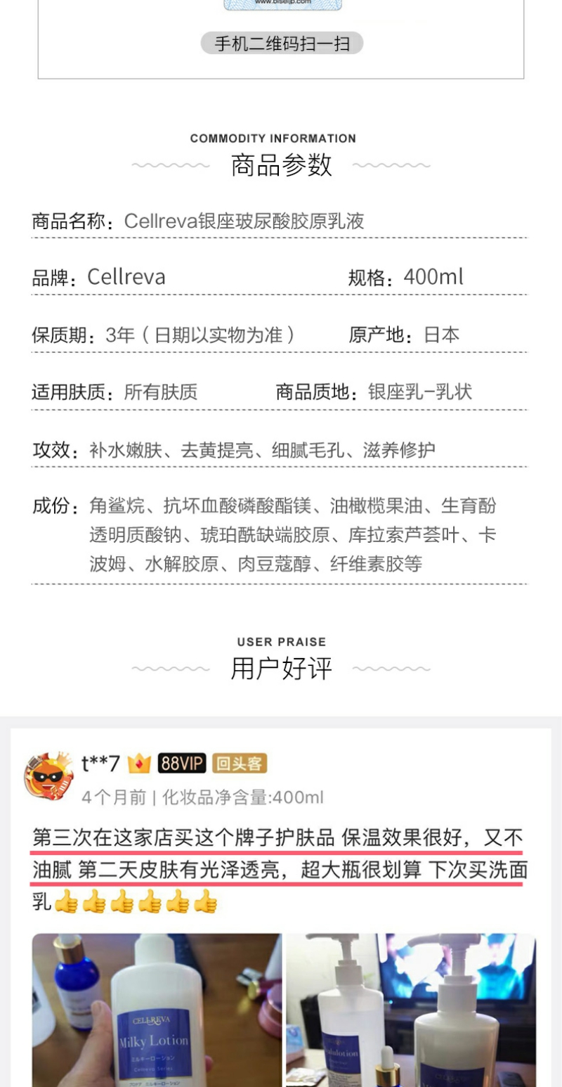 【YZ】cellreva日本进口银座乳液补水嫩肤提亮修复细腻毛孔不暗沉 400ml