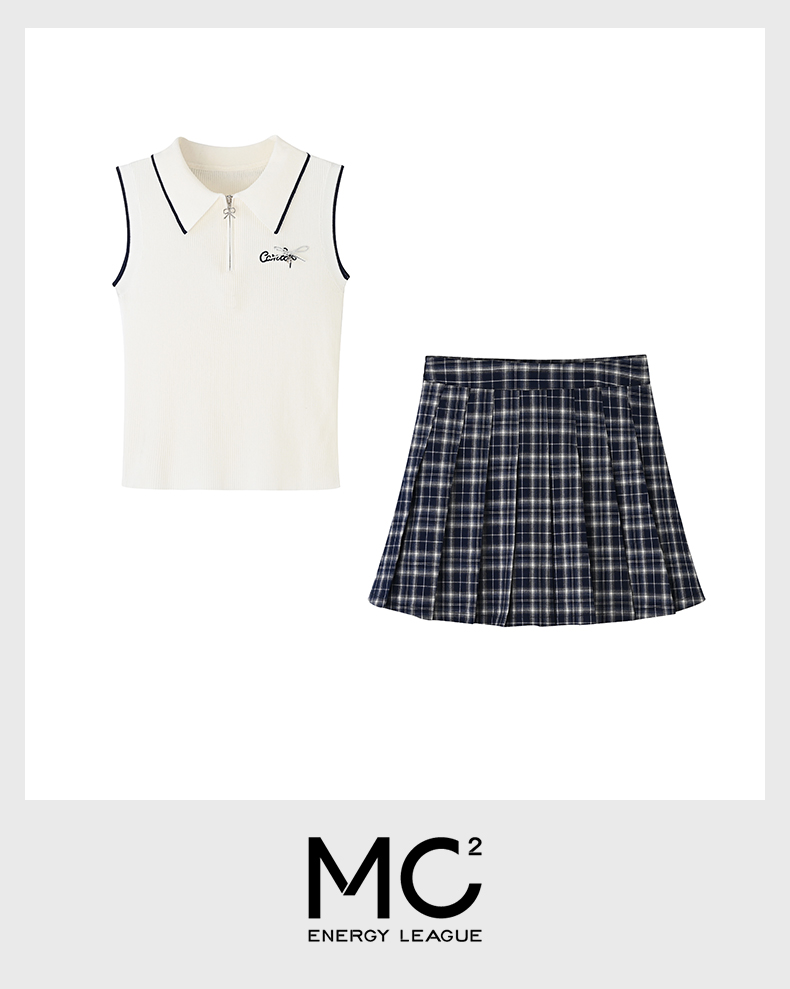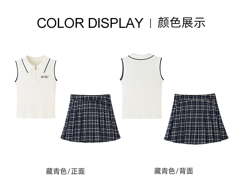 女装翻领无袖针织衫配百褶半裙-25124S5223007