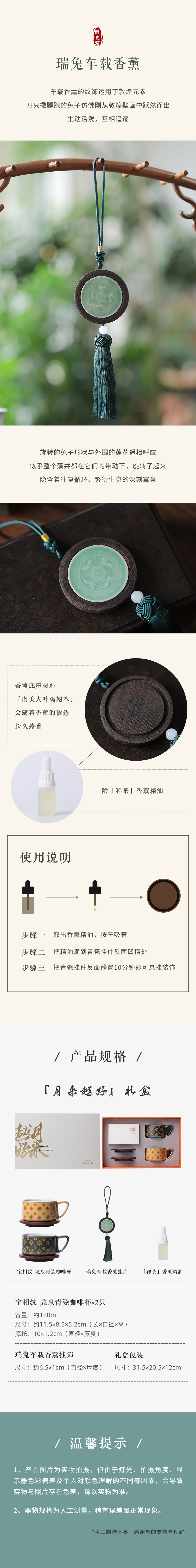 龙泉青瓷宝相纹咖啡杯&瑞兔车载香薰礼盒