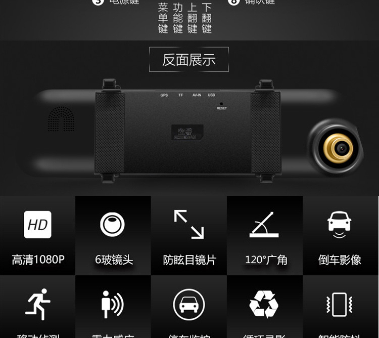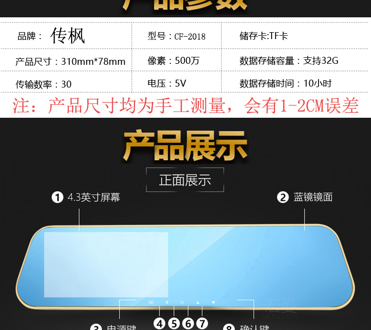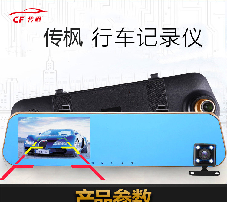 传枫 双镜头行车记录仪后视镜防炫目前后镜头记录仪 CF-2018