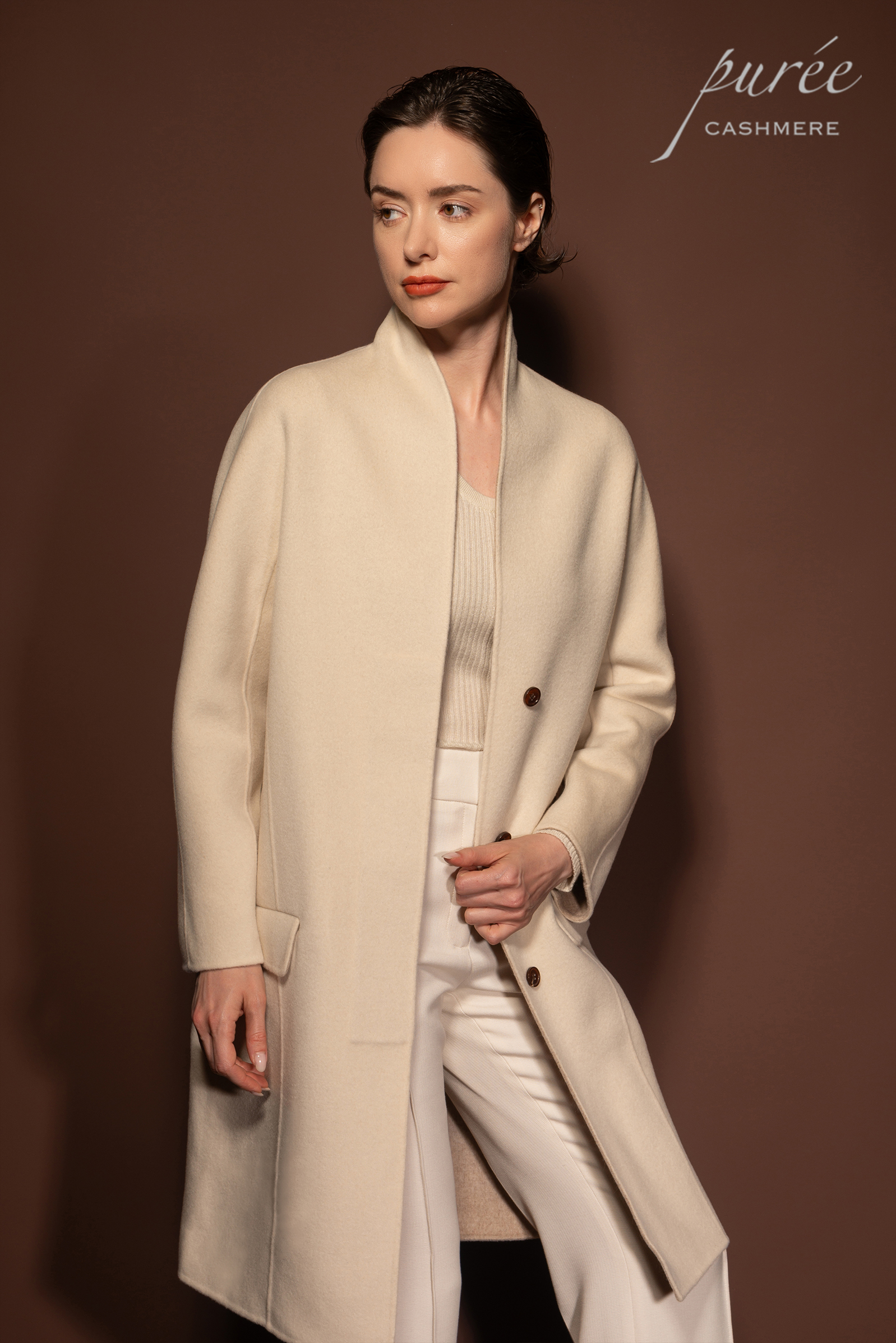 #0929「INVISIBLE LAPEL COAT」85% WOOL 15% CASHMERE 弧形领隐形前扣大衣