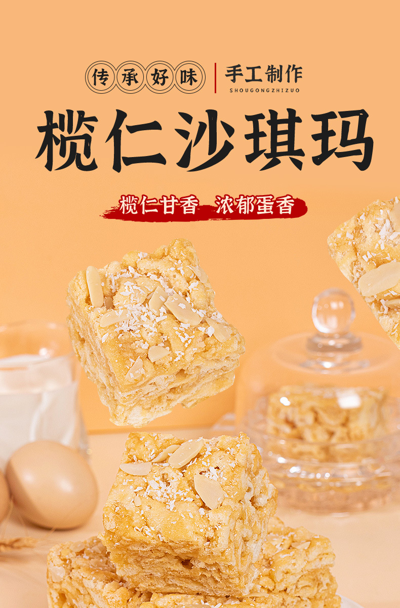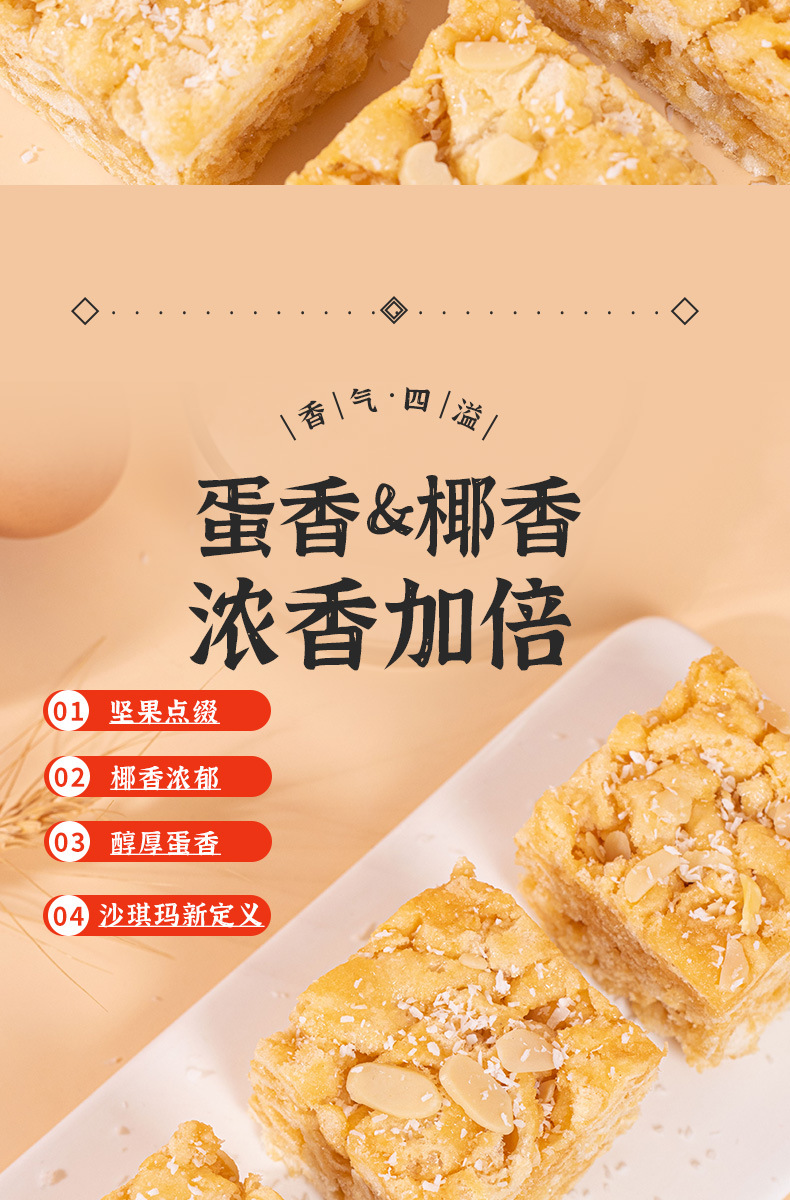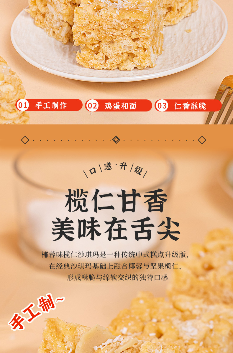 【三盒超值装❗榄仁椰蓉手工沙琪玛】甄选品质原料制作,传承好味手工制作,优选新鲜鸡蛋/香醇椰蓉/酥脆坚果仁,给您不一样的美味,早餐代餐办公室下午茶休闲零食小吃L