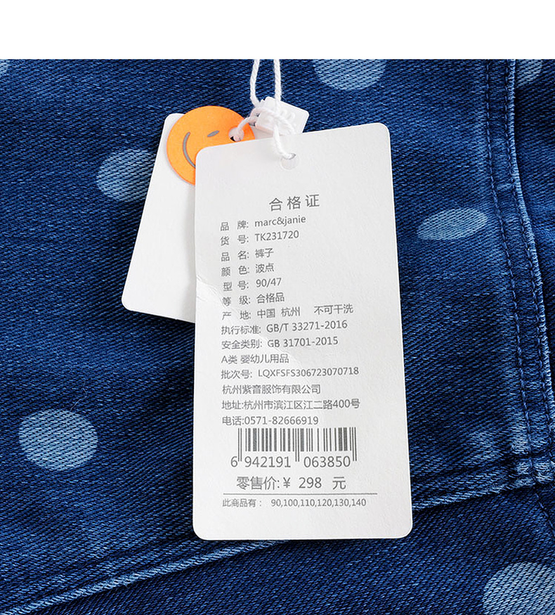 马克珍妮秋装新款 女童趣味波点弹力微喇牛仔裤 儿童裤子231720