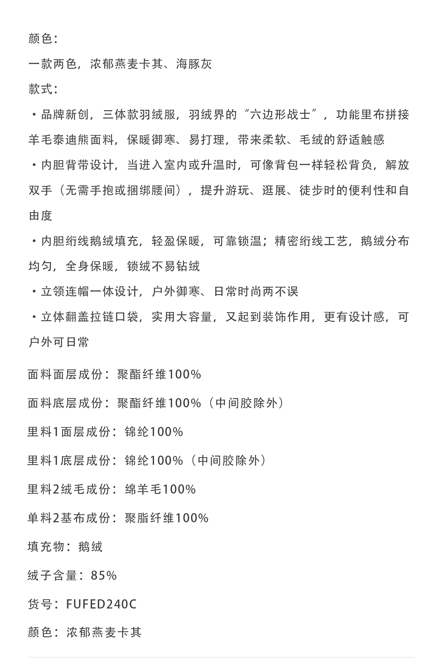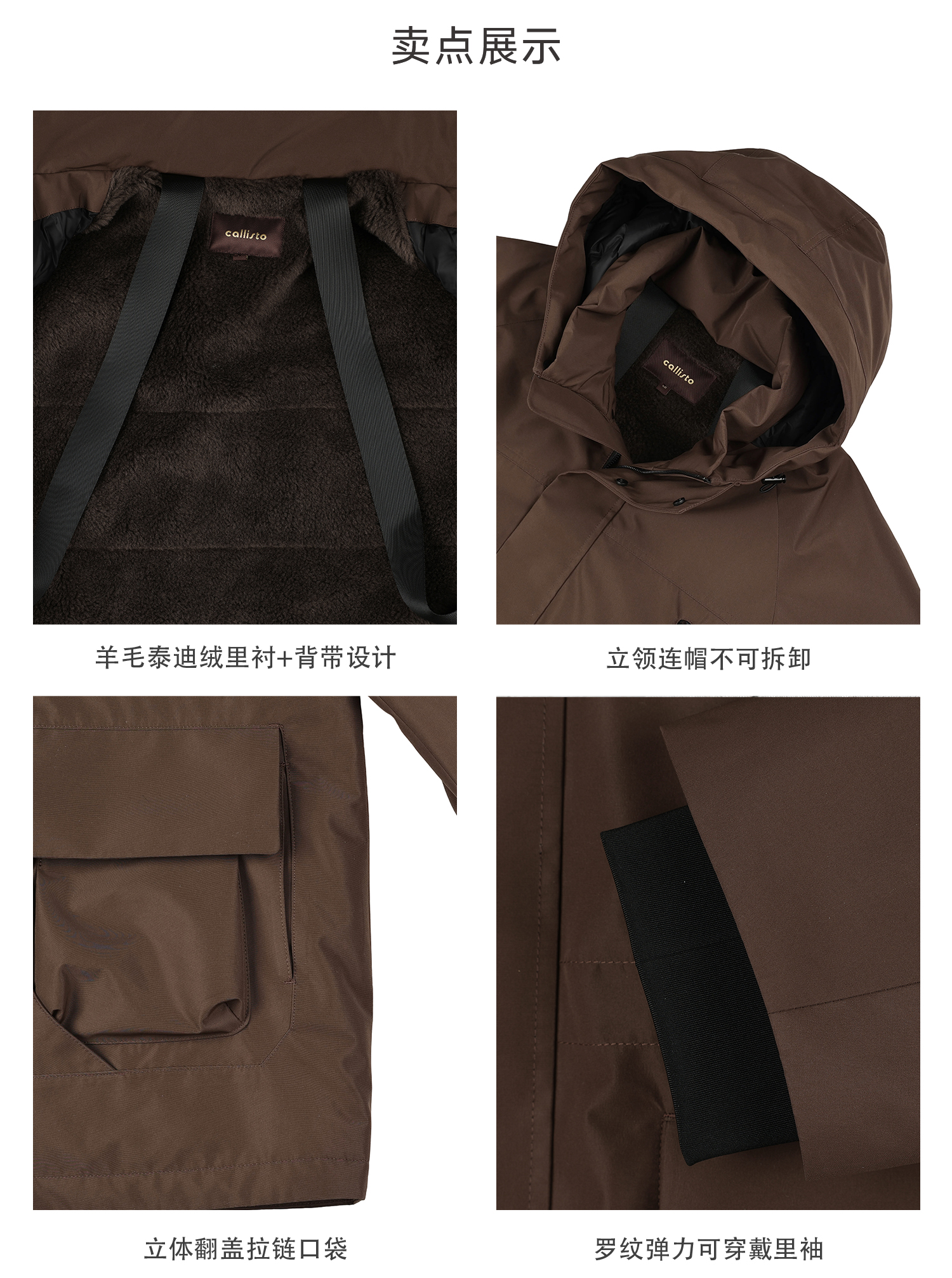 callisto燕麦卡其连帽鹅绒羽绒服