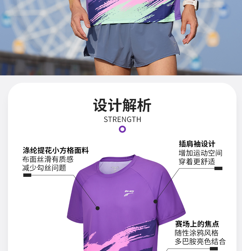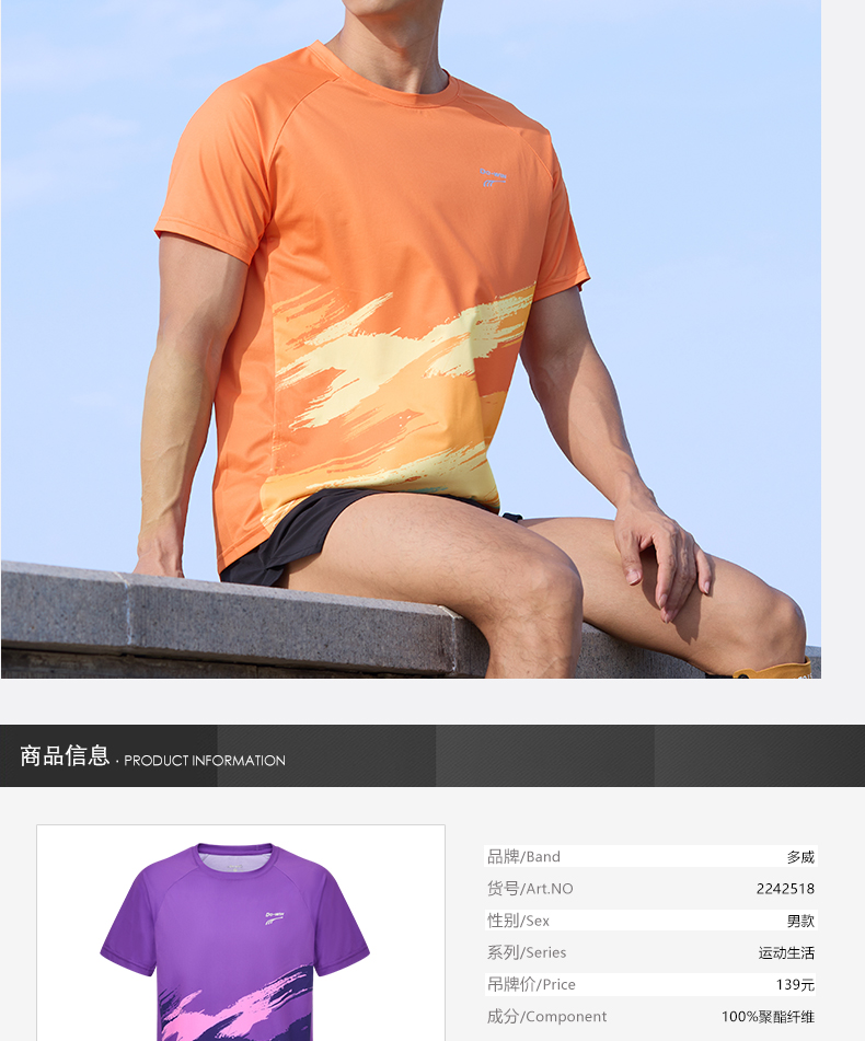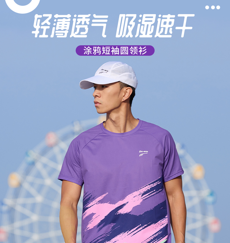 多威涂鸦圆领衫男透气速干短袖轻薄运动T恤2242518