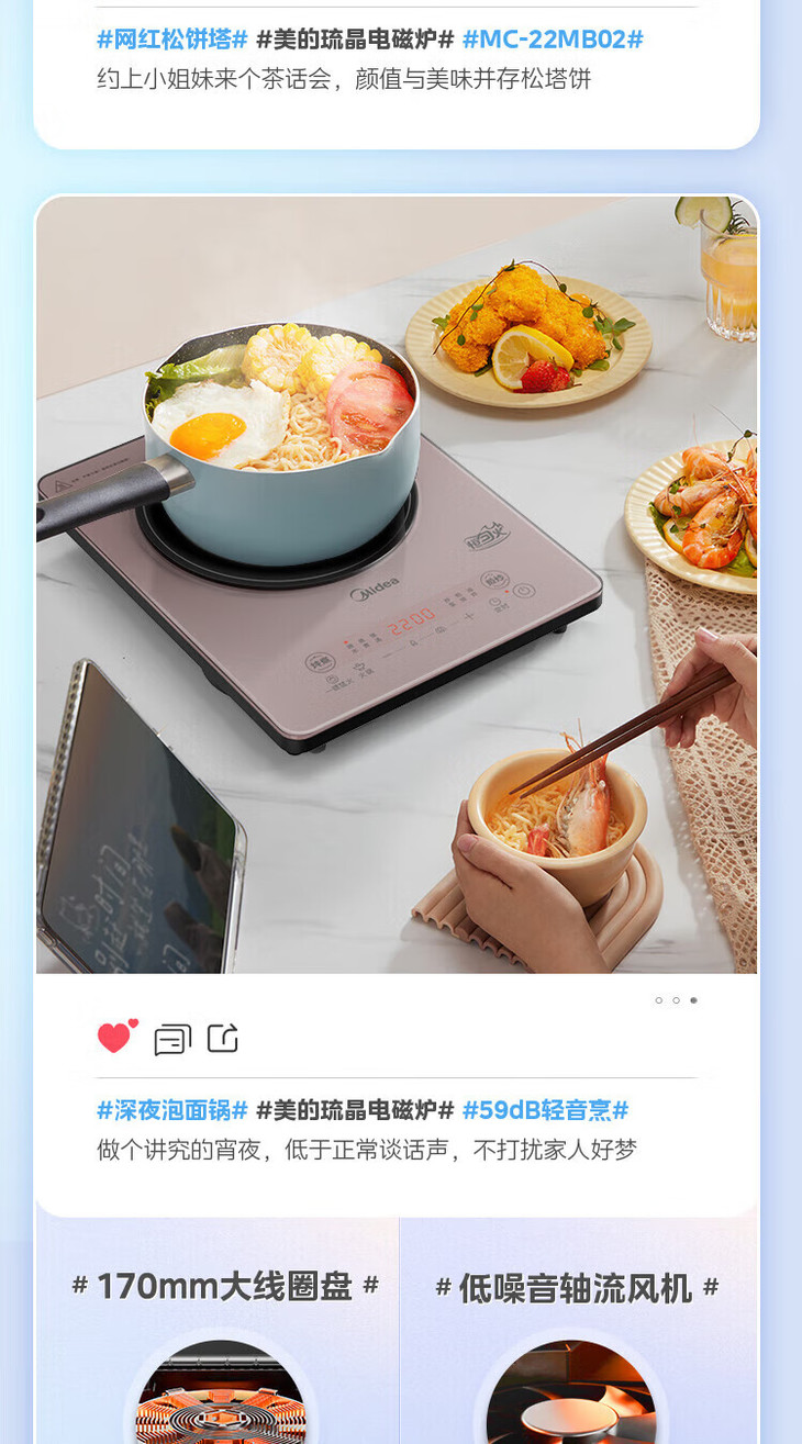 美的(Midea)(510222 )电磁炉电磁灶一键爆炒2200W家用火锅炉触控按键耐用面板大功率九档火力定时MC-22MB02