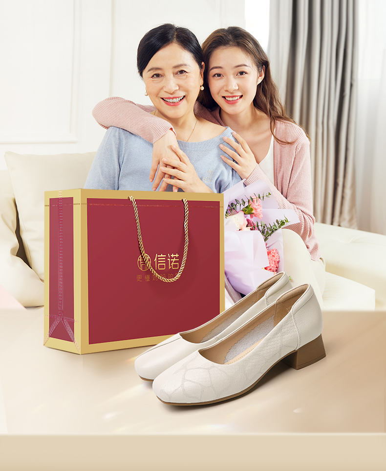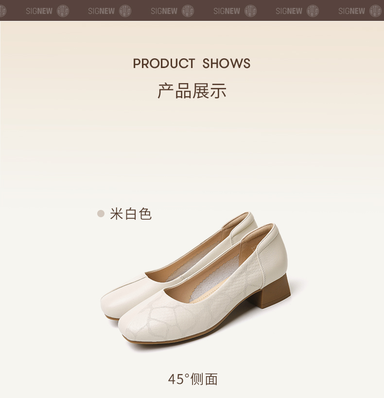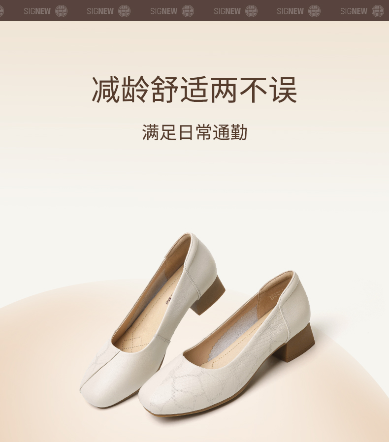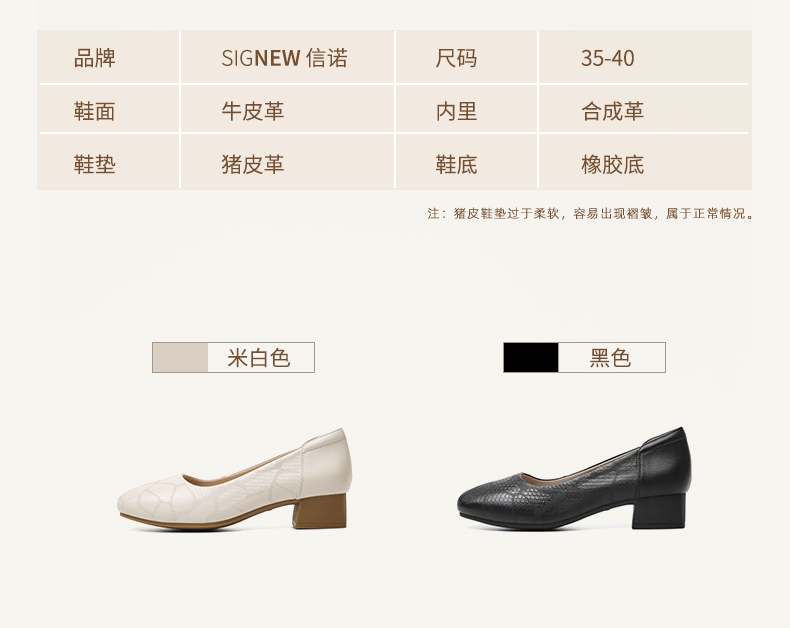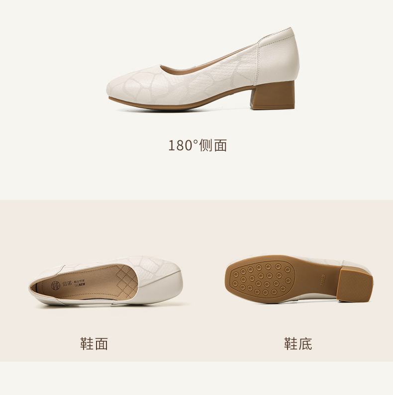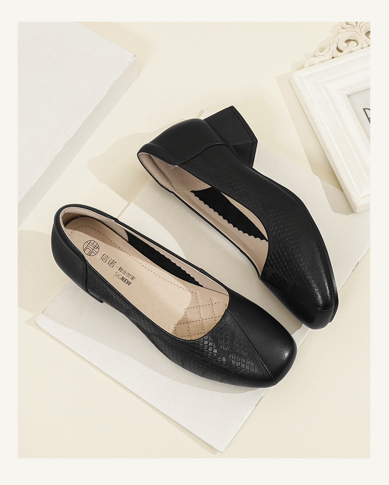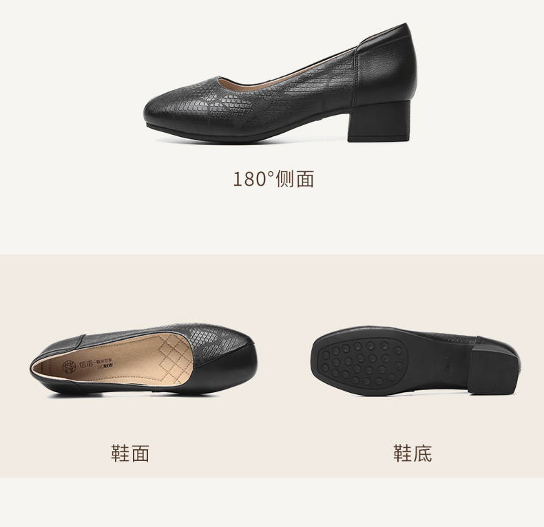 信诺舒适高跟鞋女2024新款春季中粗跟软底皮鞋中年妈妈鞋婚宴单鞋24C5009-1