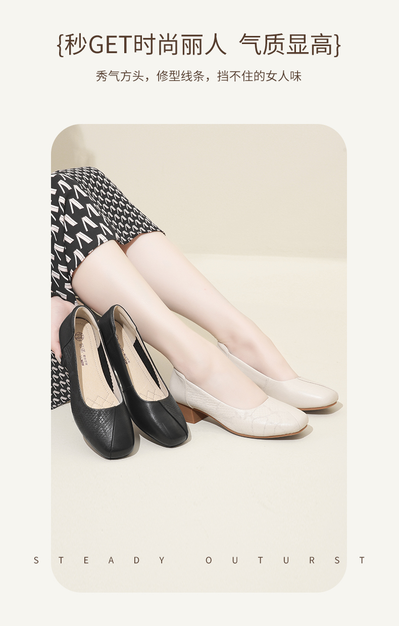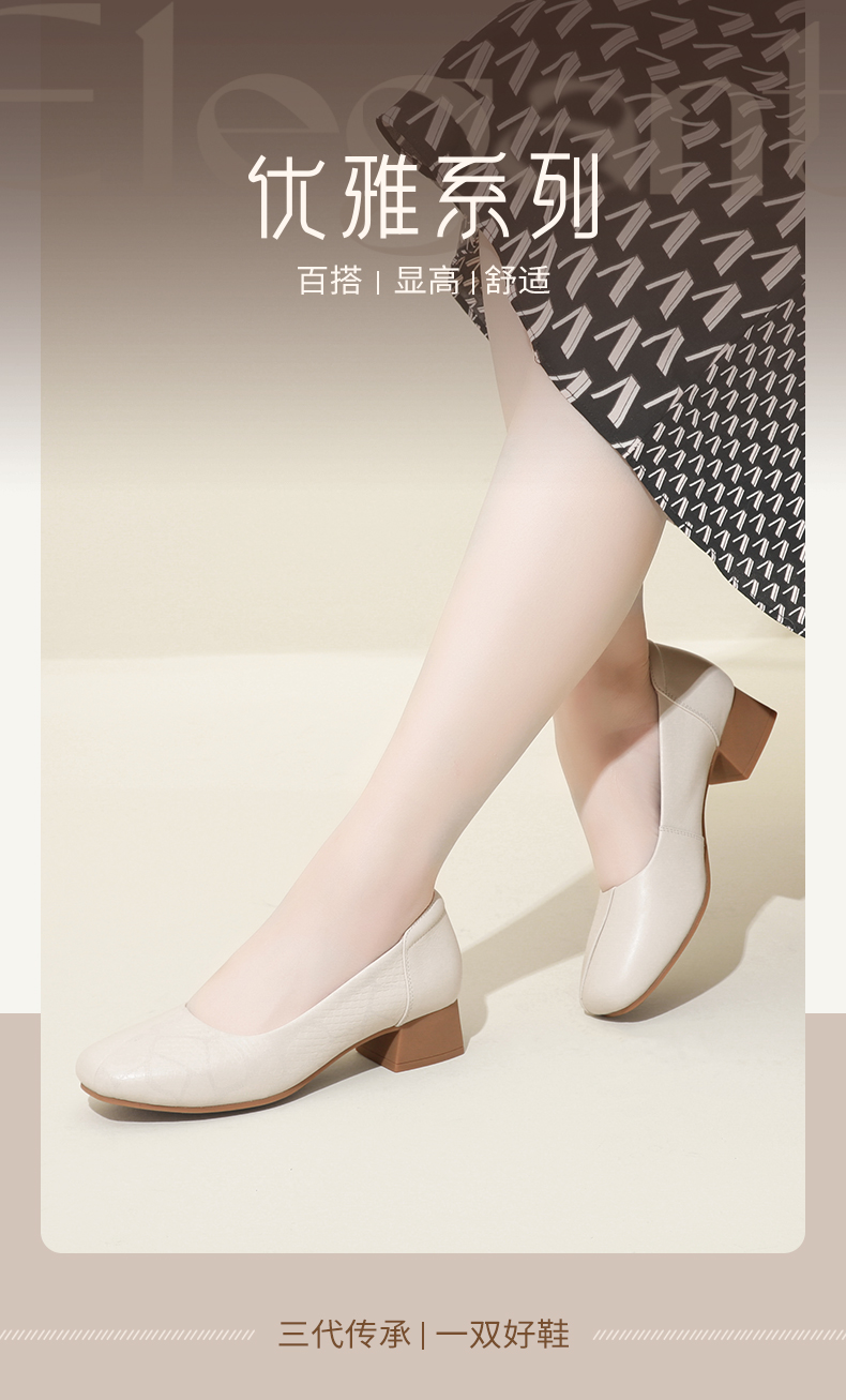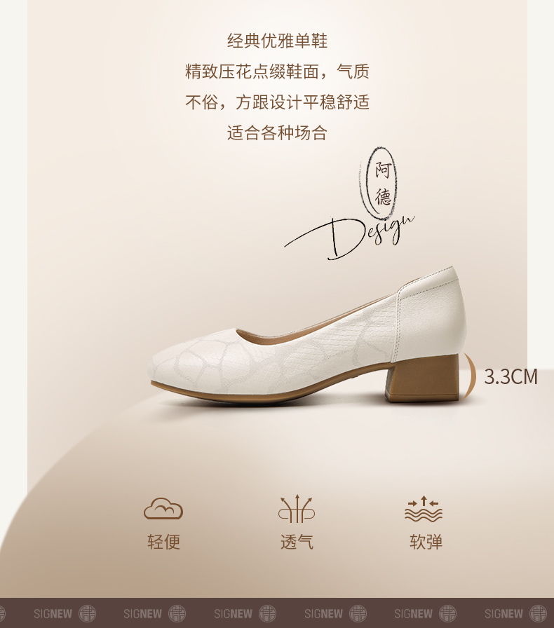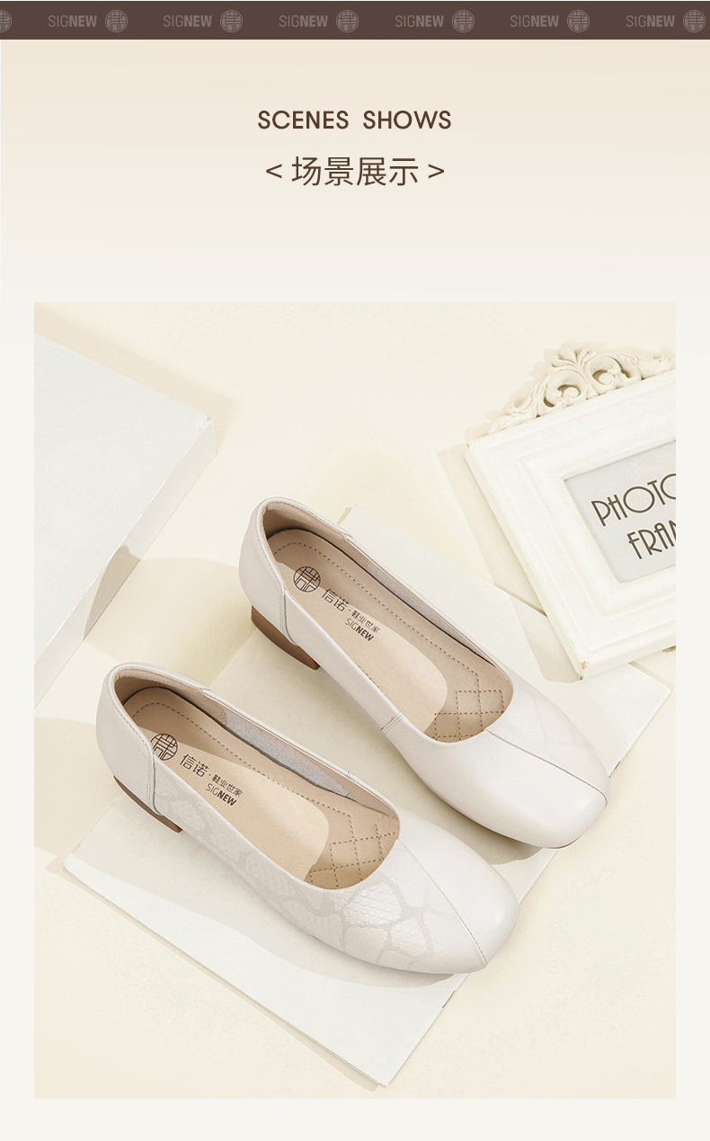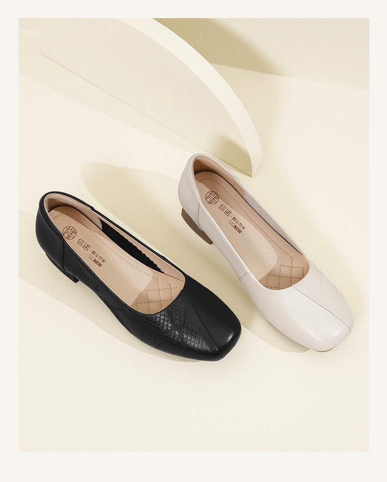 信诺舒适高跟鞋女2024新款春季中粗跟软底皮鞋中年妈妈鞋婚宴单鞋24C5009-1