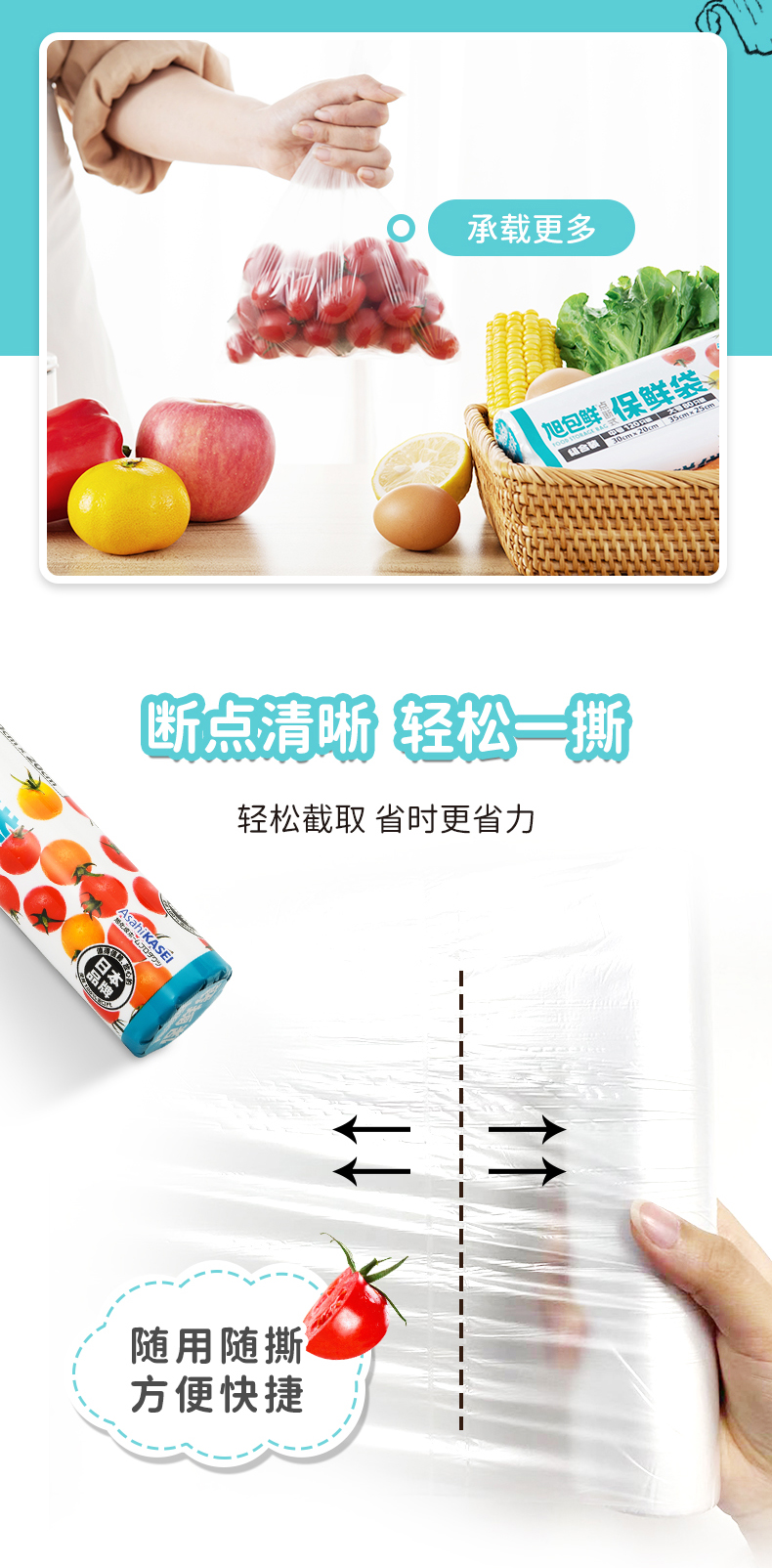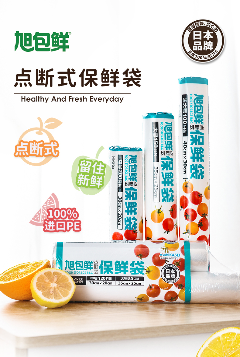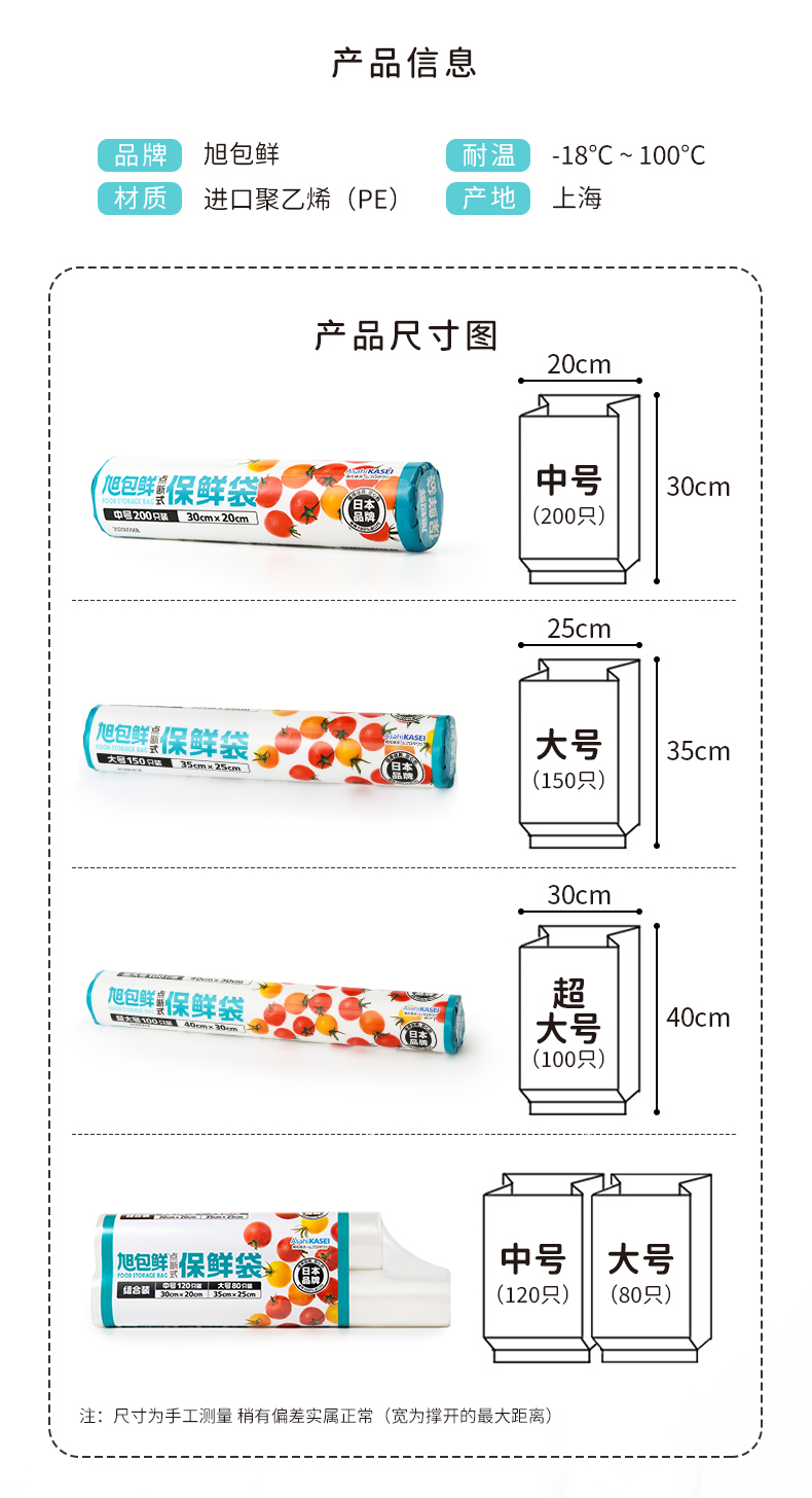 旭包鲜 日本品牌一次性PE点断式保鲜袋大号