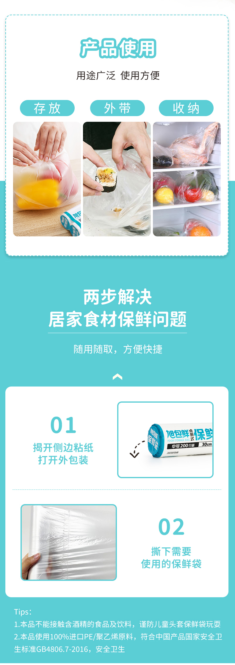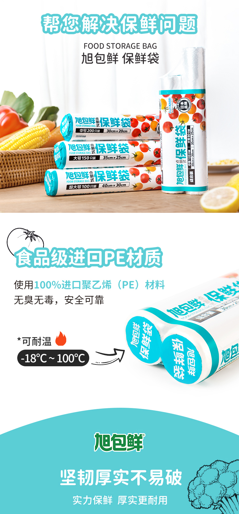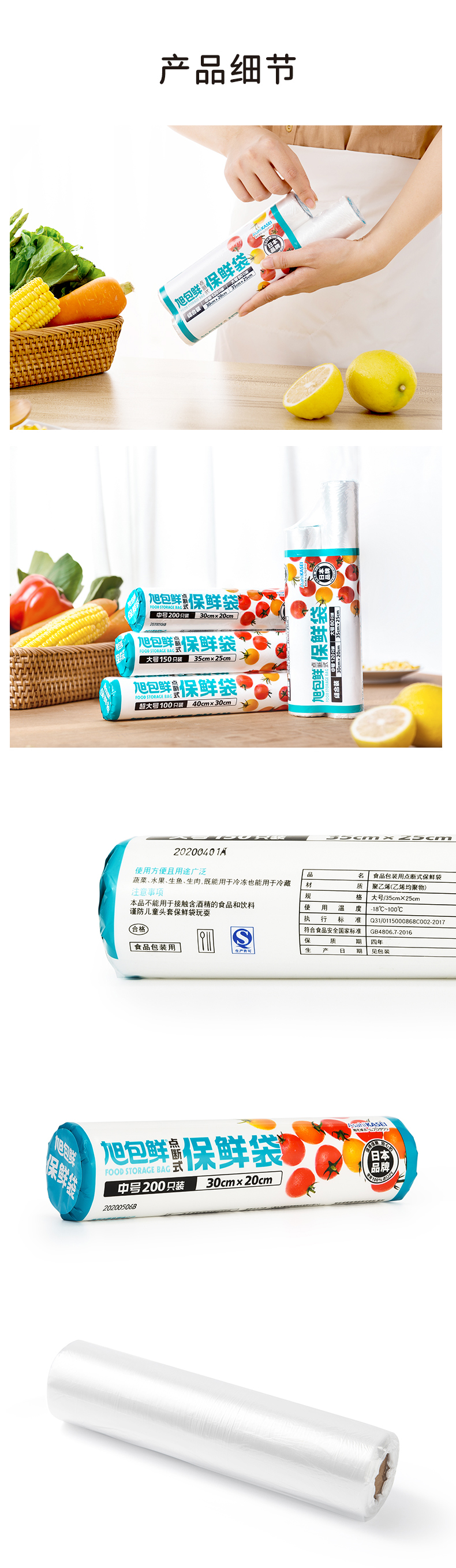 旭包鲜 日本品牌一次性PE点断式保鲜袋大号