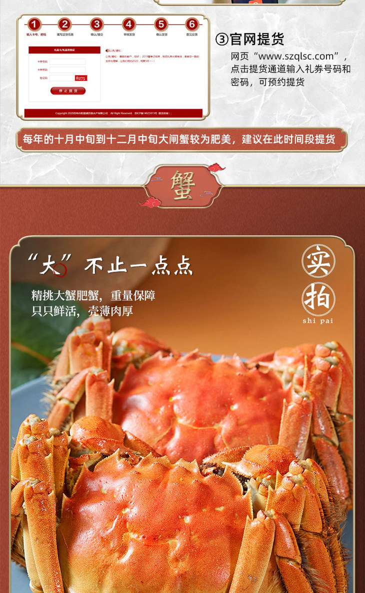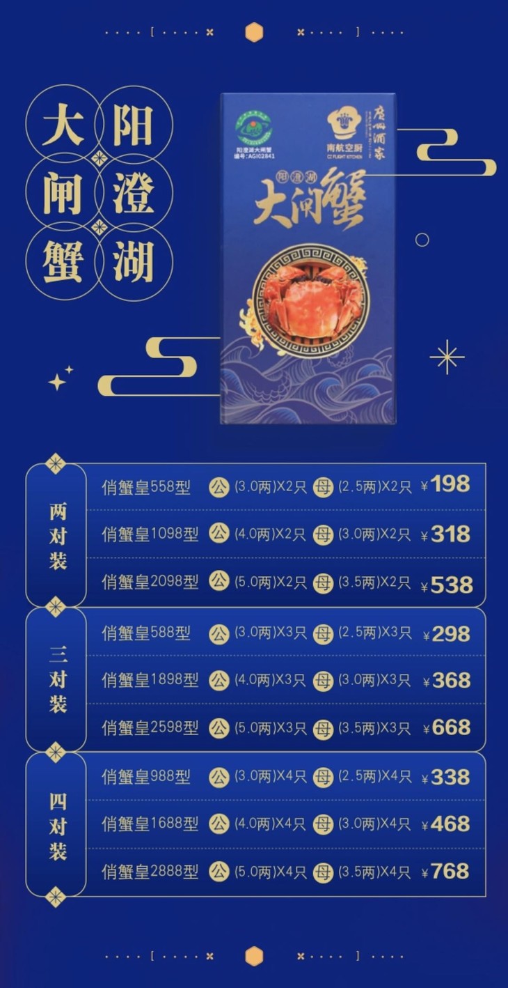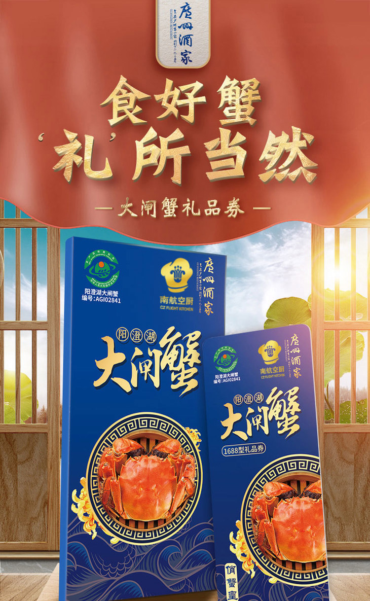 南航空厨俏蟹皇阳澄湖大闸蟹礼券(实体券包邮到家)