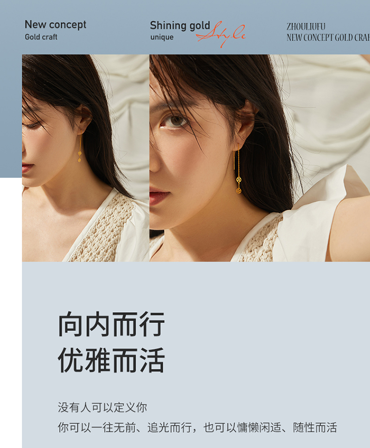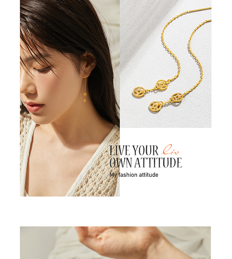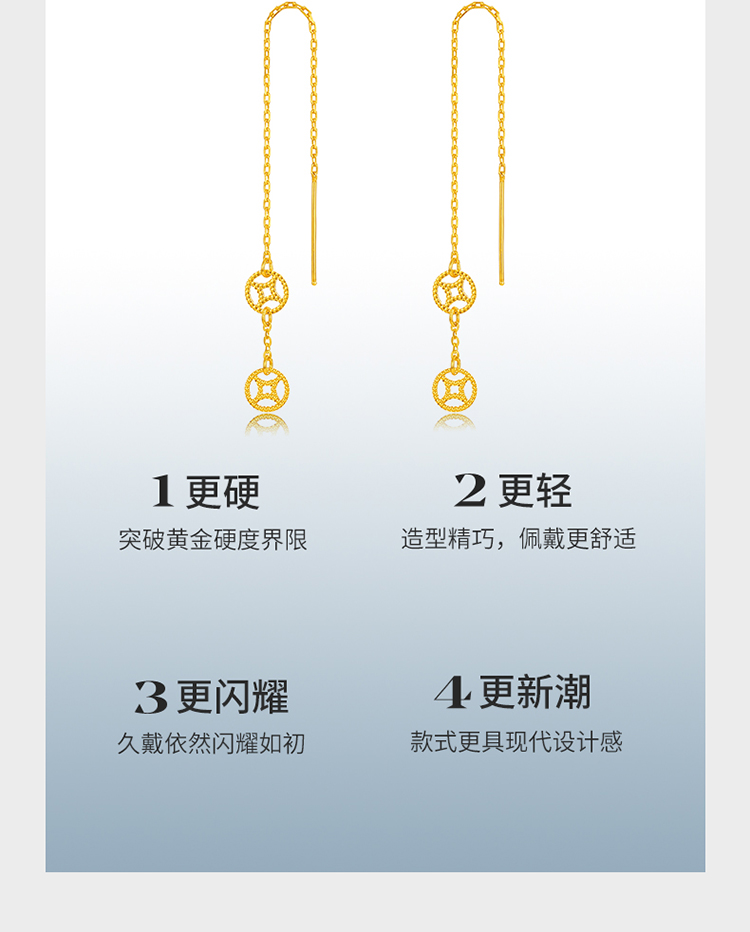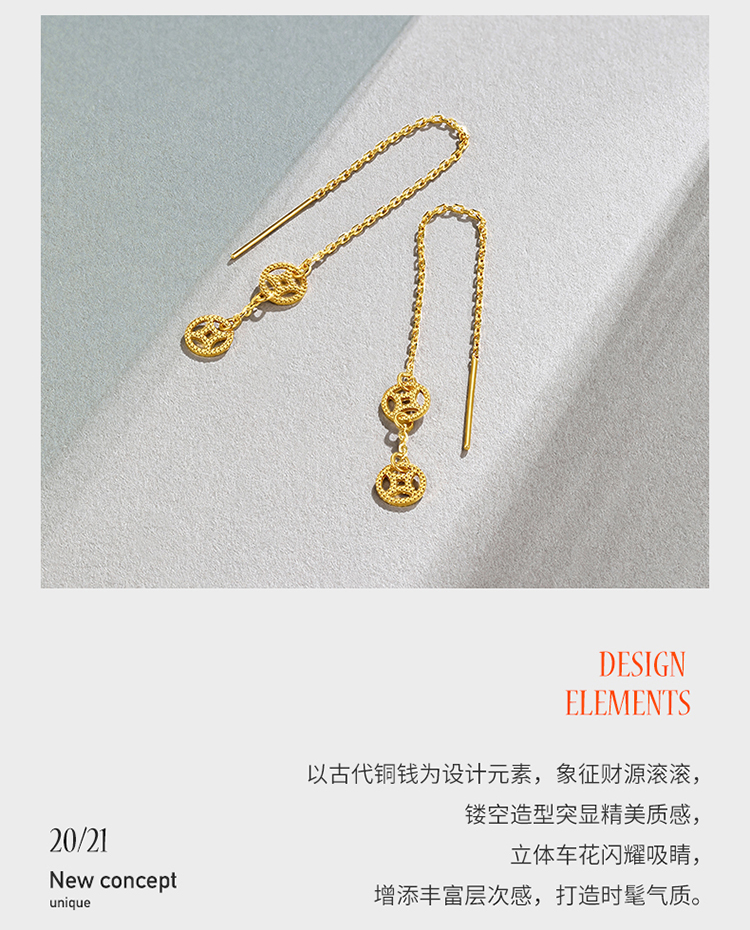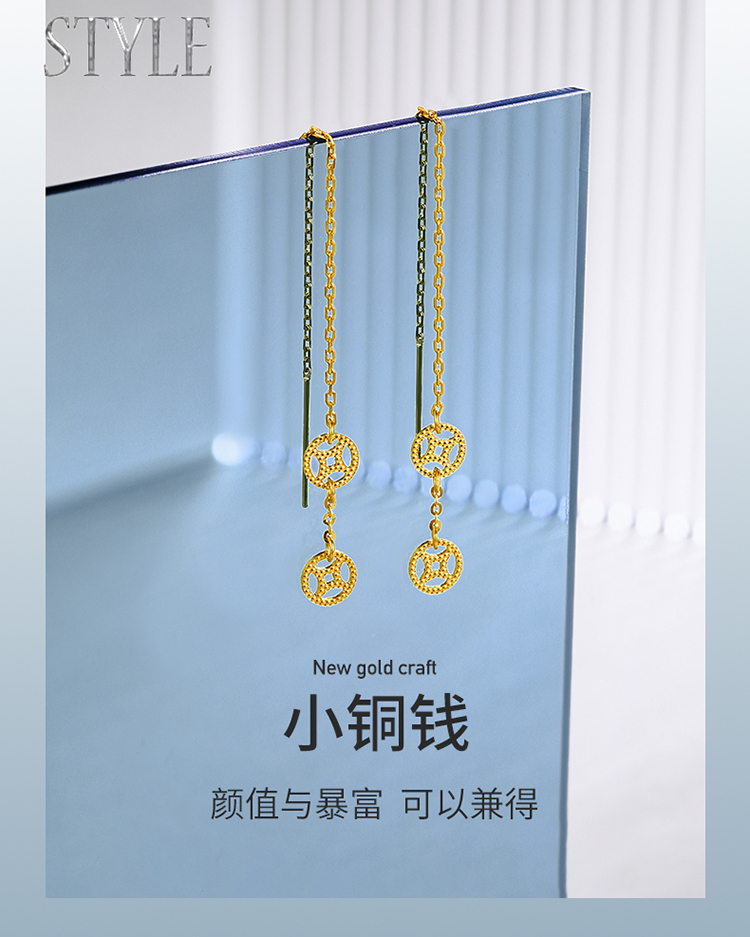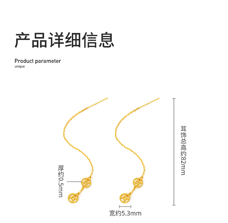 周六福黄金耳环女足金5G无极金铜钱ins风发财计价送女友礼物